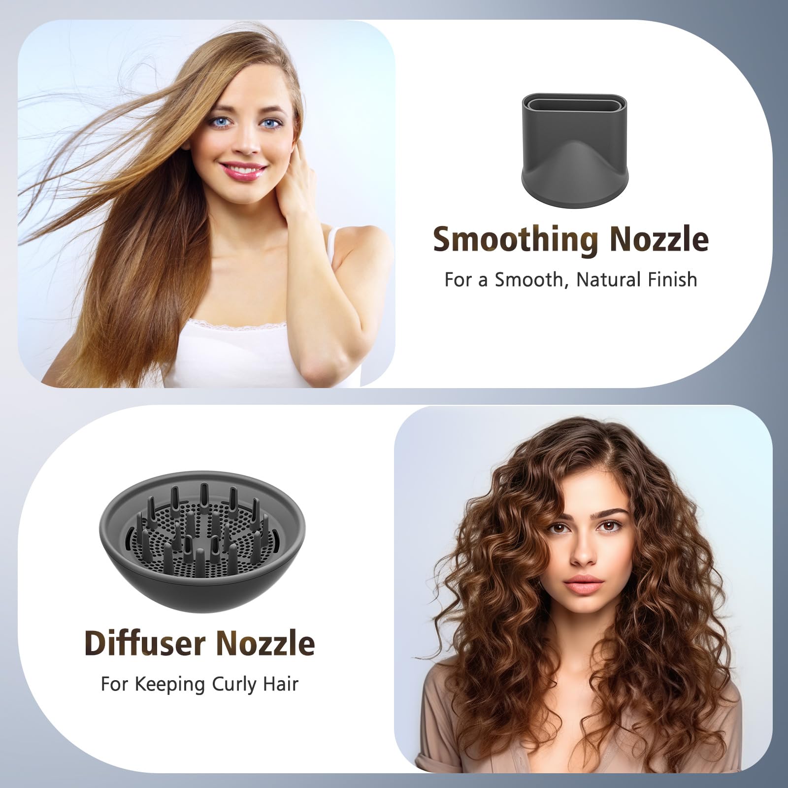 - Easy Styling Options: With a smoothing nozzle for smooth, natural-looking results and a diffusing nozzle to hold curls, this hairdryer offers easy styling solutions for all hair types, so you can get your favourite hairstyle at home.