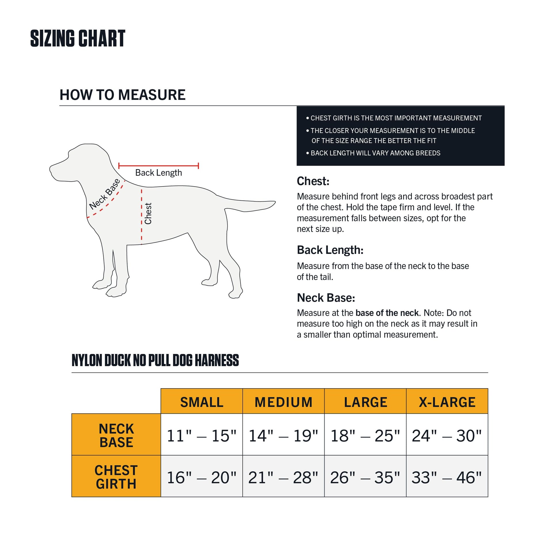 - Sizing: Small (Chest Girth: 16"- 20") Medium (Chest Girth 21"- 28") Large (Chest Girth 26"- 35") Extra Large (Chest Girth 33"- 46") See sizing chart in images