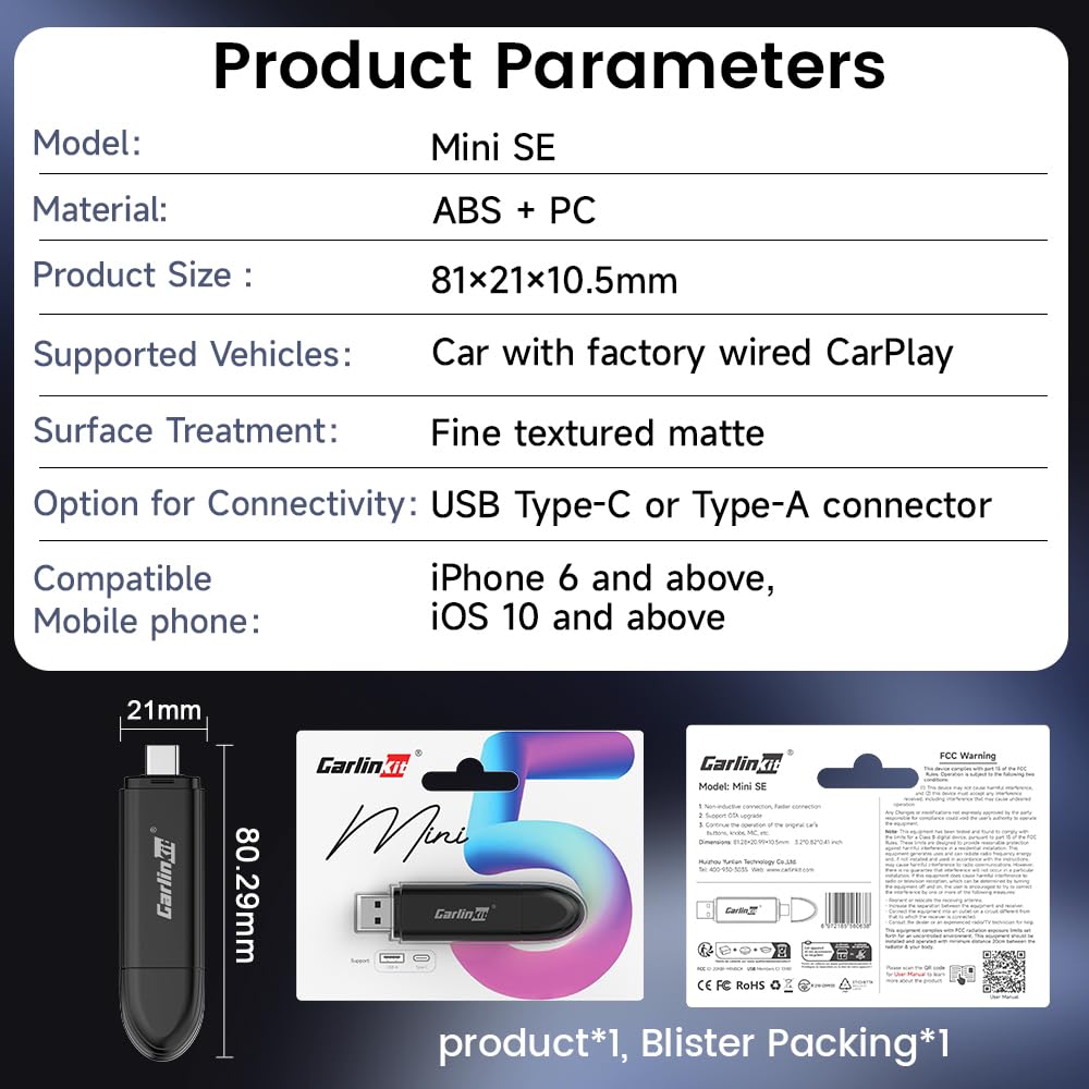 - This amazing wireless CarPlay adapter is the perfect solution for anyone looking to enjoy the convenience of wireless CarPlay in their car. If your car has factory-wired CarPlay, this adapter allows for wireless CarPlay and protects the iPhone lightning port, giving you the best of both worlds! No need to plug in your iPhone – it's that easy! The Carlinkit MiNi SE Wireless CarPlay Box is a breeze to install!