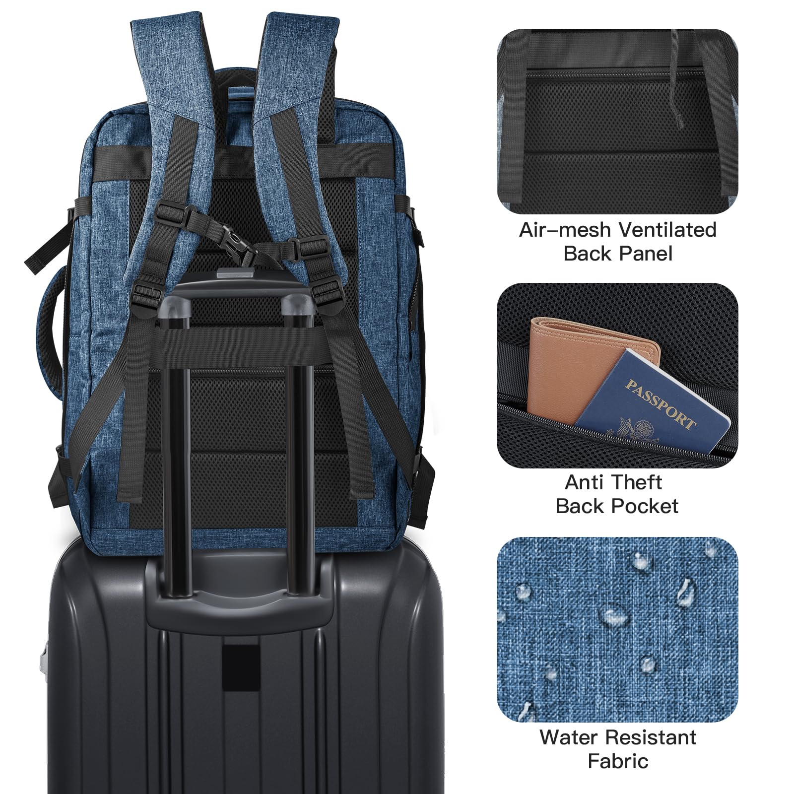 Carry On Backpack, Extra Large 50L Travel Backpack for Men & Women, Expandable Backpack For Airplanes, 17 Inch Laptop Backpack, Luggage 40L Daypack Lightweight Business Weekender Bag, Blue