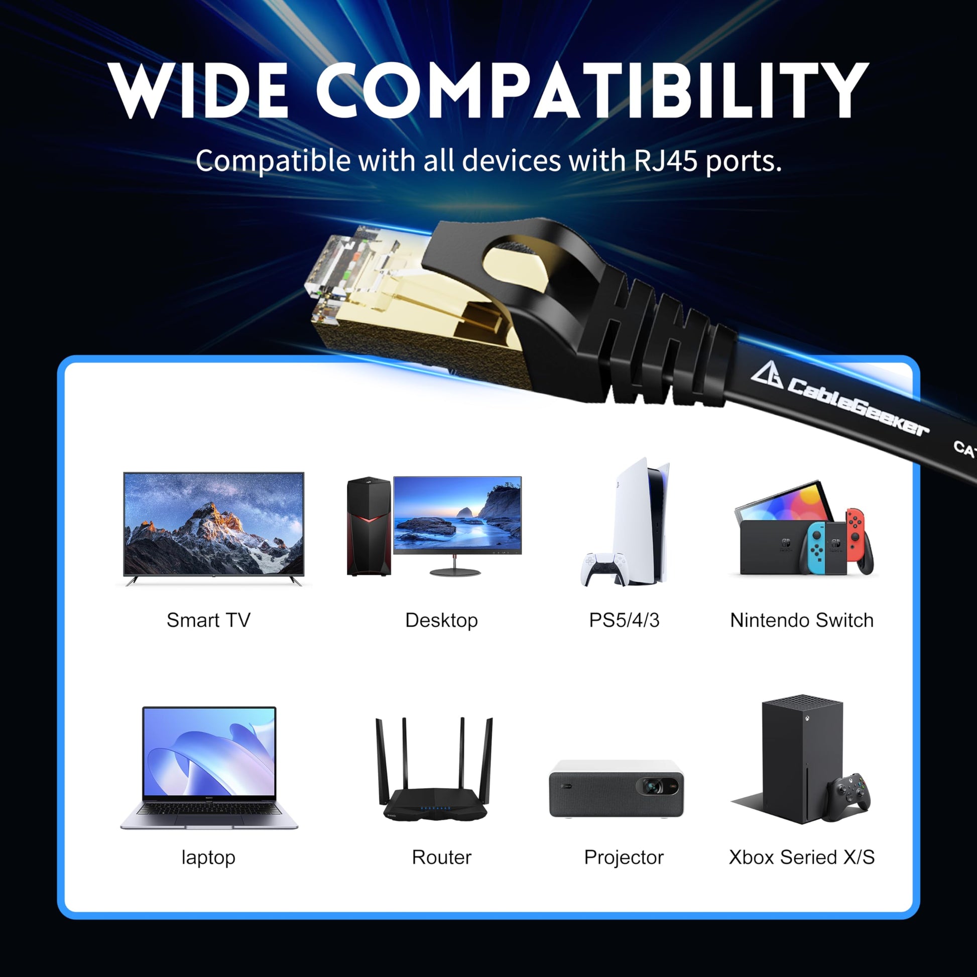 - Versatile Compatibility: Cat7 high speed ethernet cable is backward compatible with Cat5, Cat5e, and Cat6 standards, incorporating advanced shielding to reduce crosstalk and system noise, thereby improving overall network performance