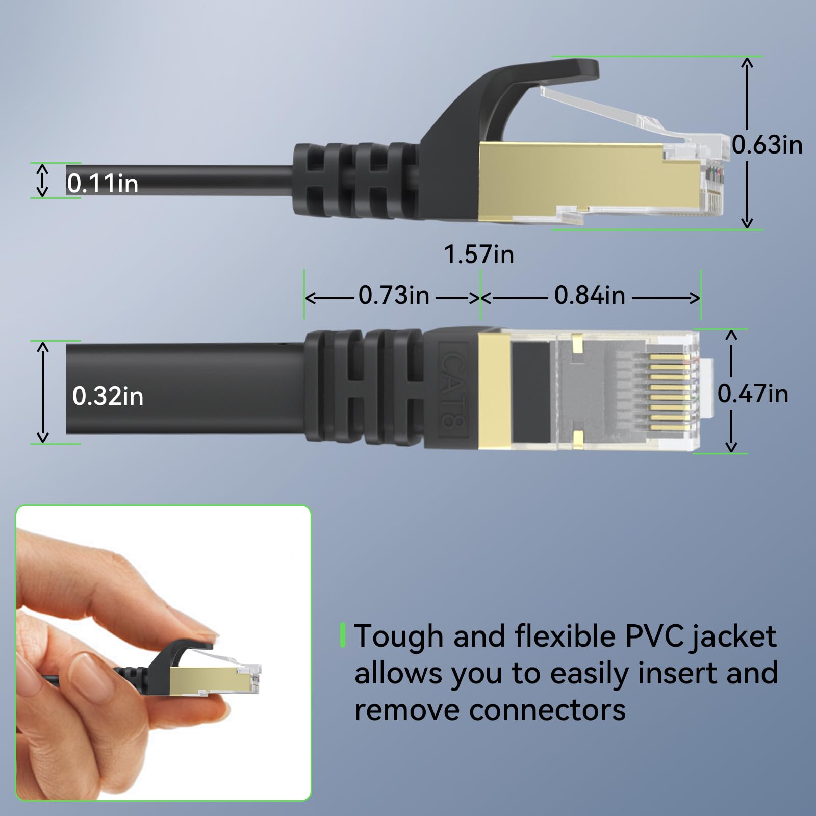 - More Applications : Our Cat 8 network cable provide universal connectivity for any devices with RJ45 port, such as computer servers, routers and other gaming system, etc. Cat8 patch cable is backward compatible with Cat5, Cat5e, Cat6, Cat6a and Cat7 ethernet cable