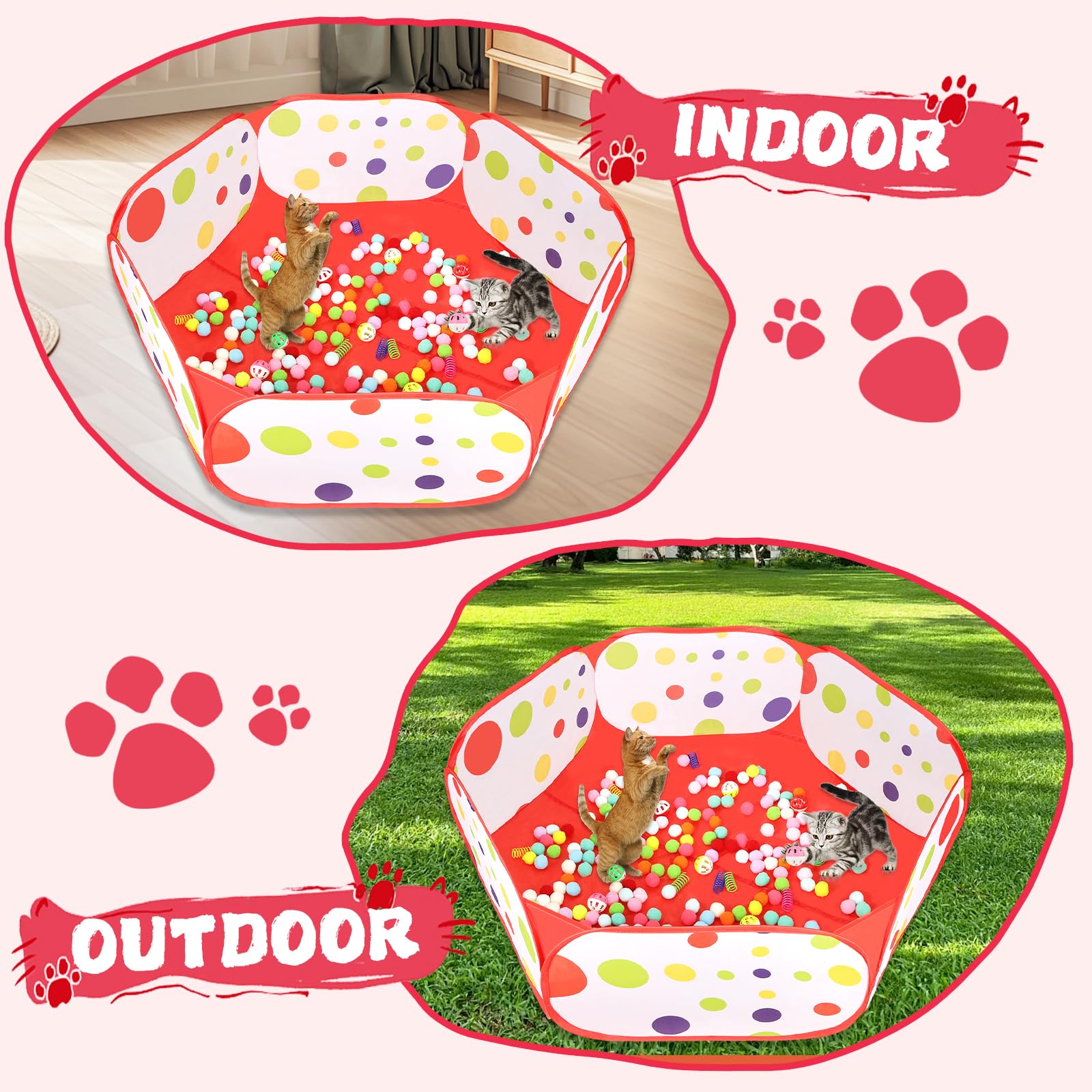 This foldable cat ball pit with cat toys offers endless fun and sensory stimulation for indoor and outdoor play. Made with soft, durable materials, it ensures safety and comfort. Easy to set up and portable, it also doubles as a cozy resting spot, promoting active play and bonding for your cat anytime, anywhere..