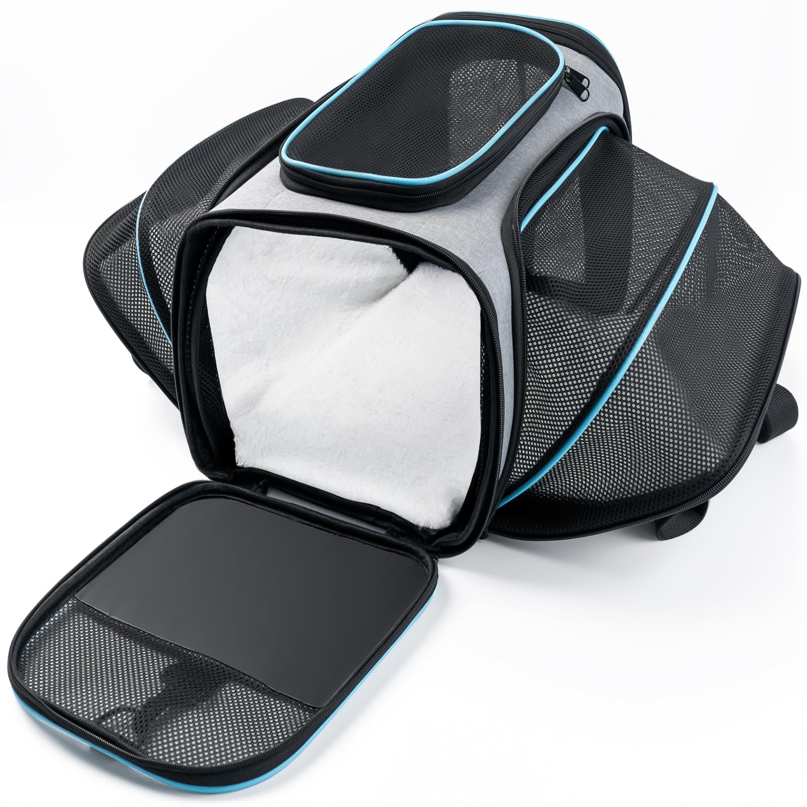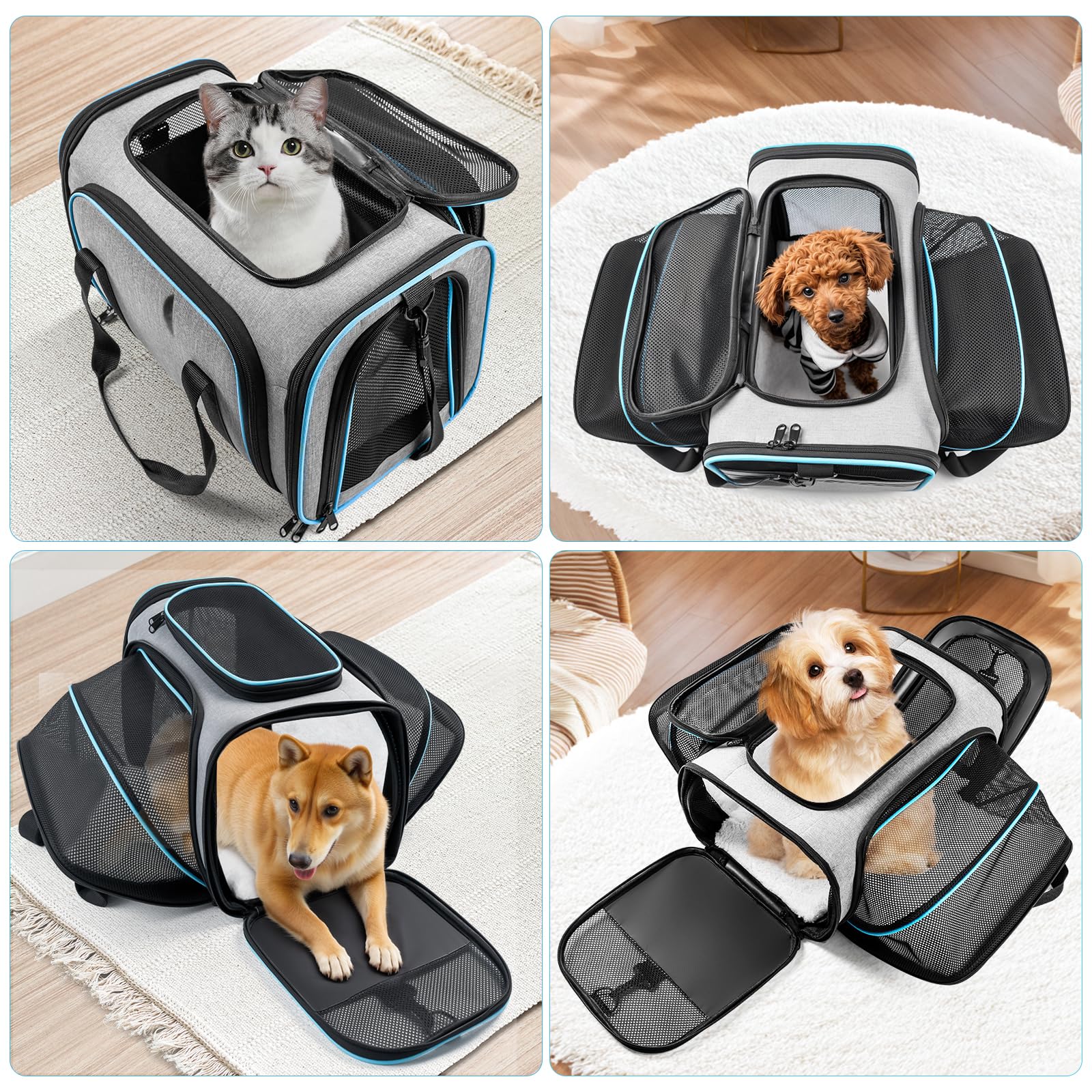 Cat Dog Carrier - Airline Approved Expandable Soft-Sided Pet Carrier, 4 Sides Expandable Cat Collapsible Carrier with Removable Fleece Pad and Pockets for Cats Dogs and Small Animals
