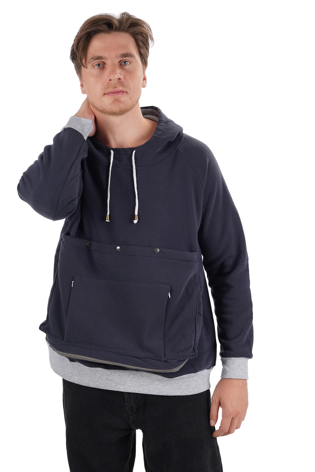 Cat Dog Carrier Hoodie Big Pet Pouch Sweatshirt Puppy Kitten Holder Carrier Pullover Top Kangaroo Unisex Hoodies, Navy, XX-Large