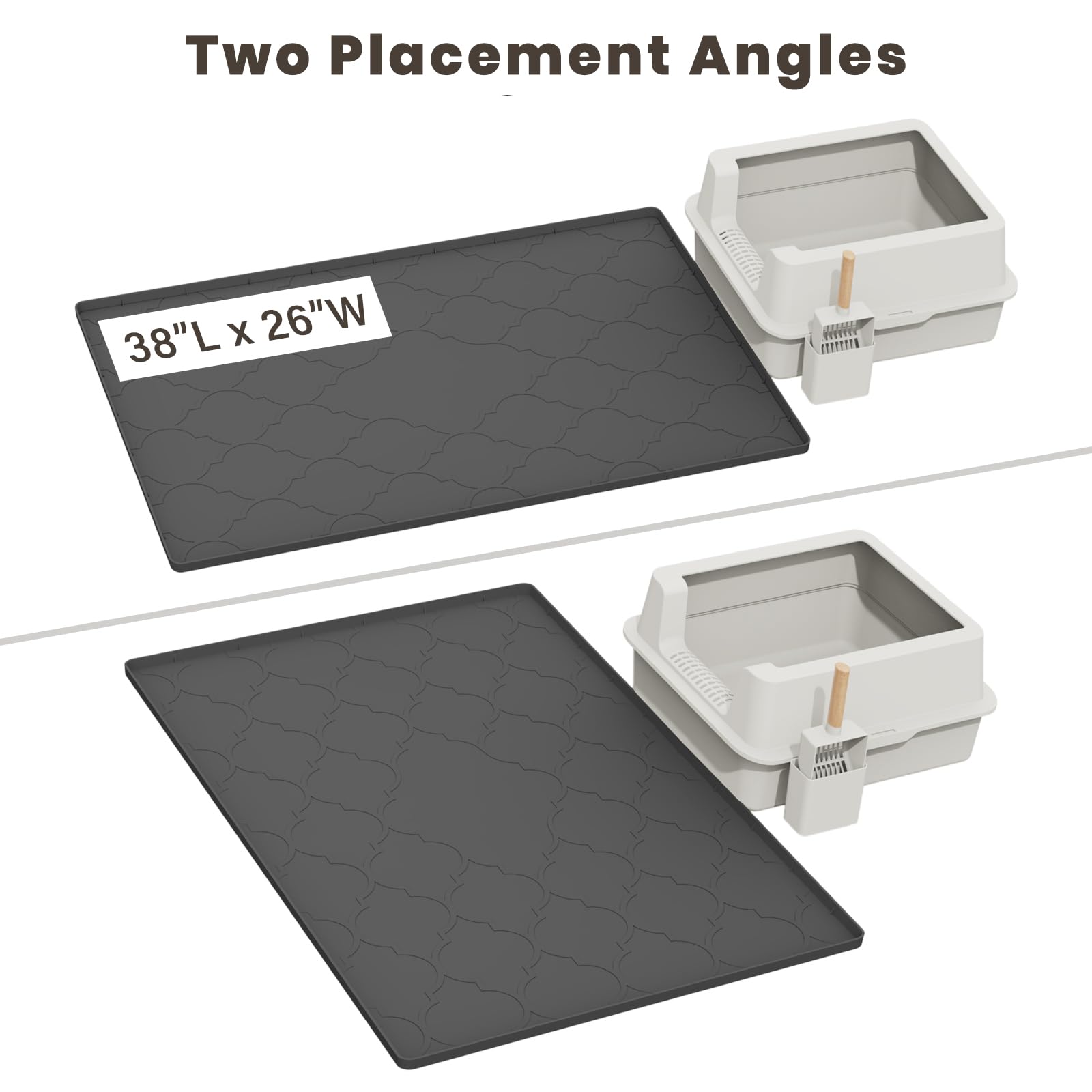 Cat Litter Box Mat, 38" X 26" Large Silicone Cat Litter Trapping Mat, Easy Clean for Scatter Control, Soft on Kitty Paws, Waterproof, Urine-Proof, Non-Slip Kitty Litter Mat for Floor, Black