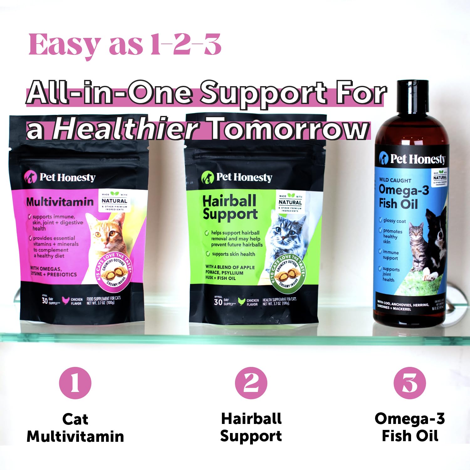 - A Texture and Taste Cats Love: Pet Honesty’s Multivitamin for cats is a delicious supplement that contains essential vitamins, minerals, and nutrients to support your cat’s overall health. Powerful, wholesome ingredients are packed inside a unique texture format: crunchy on the outside and creamy on the inside, offering a taste and texture combination that cats love.