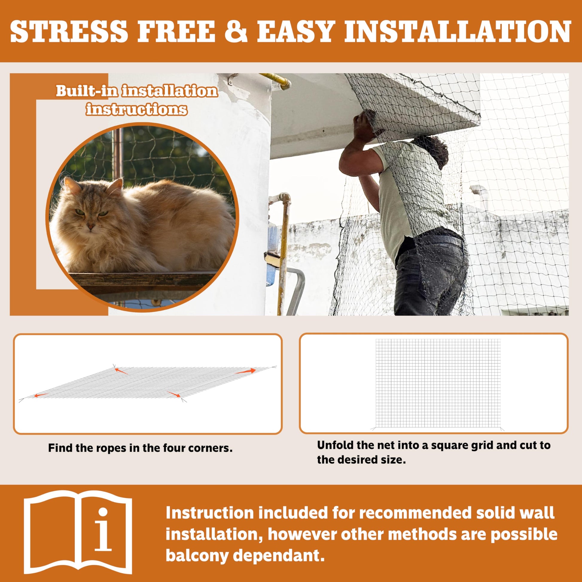 Effectively prevents cats from falling from balconies or windows, ensuring their safety while they sleep, play, or explore near windows or high places. The net allows for proper ventilation, so you can relax without constantly monitoring your cat.