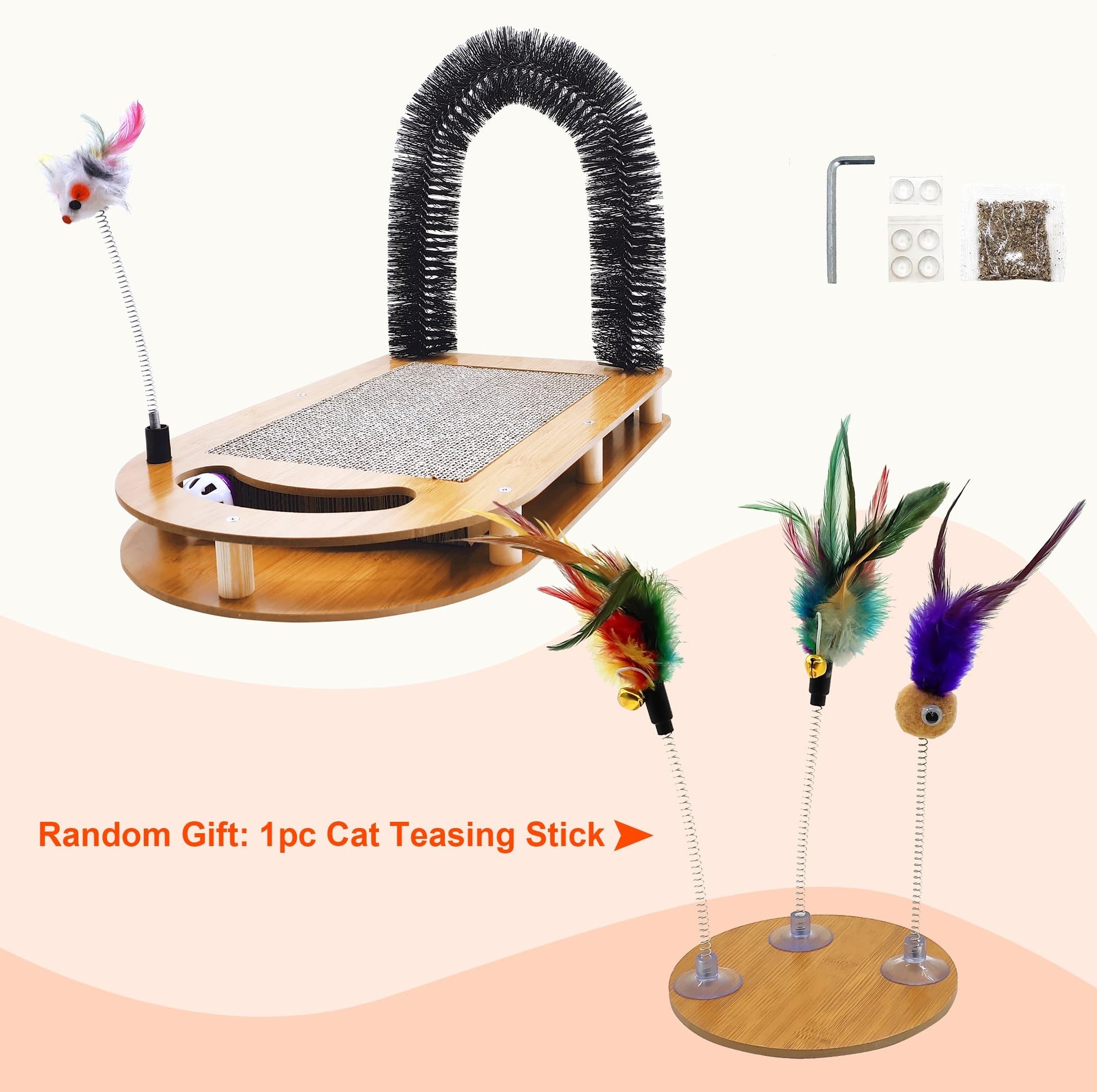 Cat Scratching Board with Cat Arch Self Groomer and Kitty Ball Toys, cat Scratcher Cardboard for Indoor Cats, Eco-Friendly Wood, Durable, Stable and Non-Slip, cat Scratcher Pad