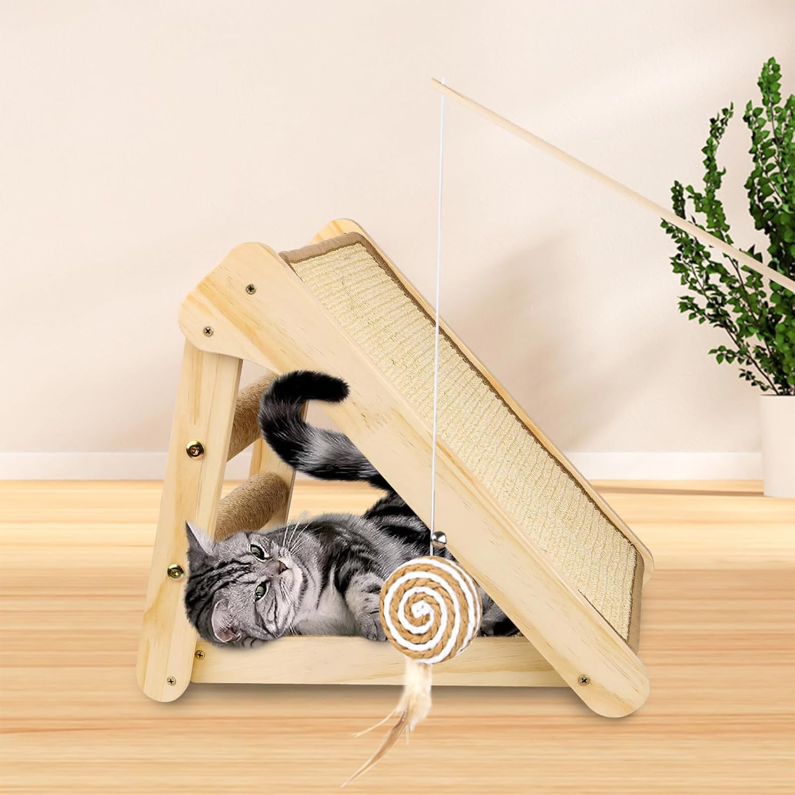 - Breathable & Durable Materials: Made from natural wood and sisal, our recyclable cat scratcher is durable, eco-friendly, and built to last. The sisal cat scratching pad helps protect your furniture from being scratched and offers a satisfying scratching experience for your cat