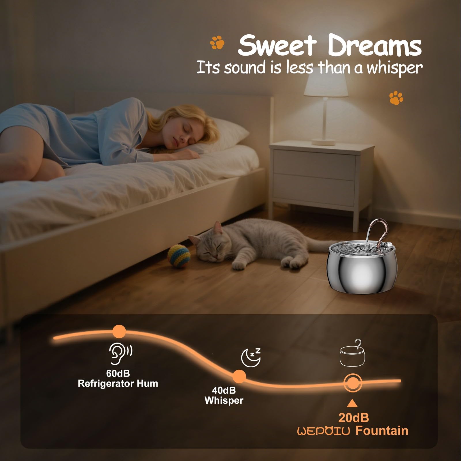 - Ultra-quiet, perfect capacity 2.5L/84oz: The water fountain indoor cat is equipped with a near-silent 1.5W low-power pump, its sound (<20dB) is less than a whisper, so you can enjoy unparalleled tranquility.2.5L perfect capacity for both space-saving and 5-7 days of water supply to avoid bacterial growth due to the large tank of stagnant water, to take care of your pet's health, and at the same time do not need to worry about replenishment issues.