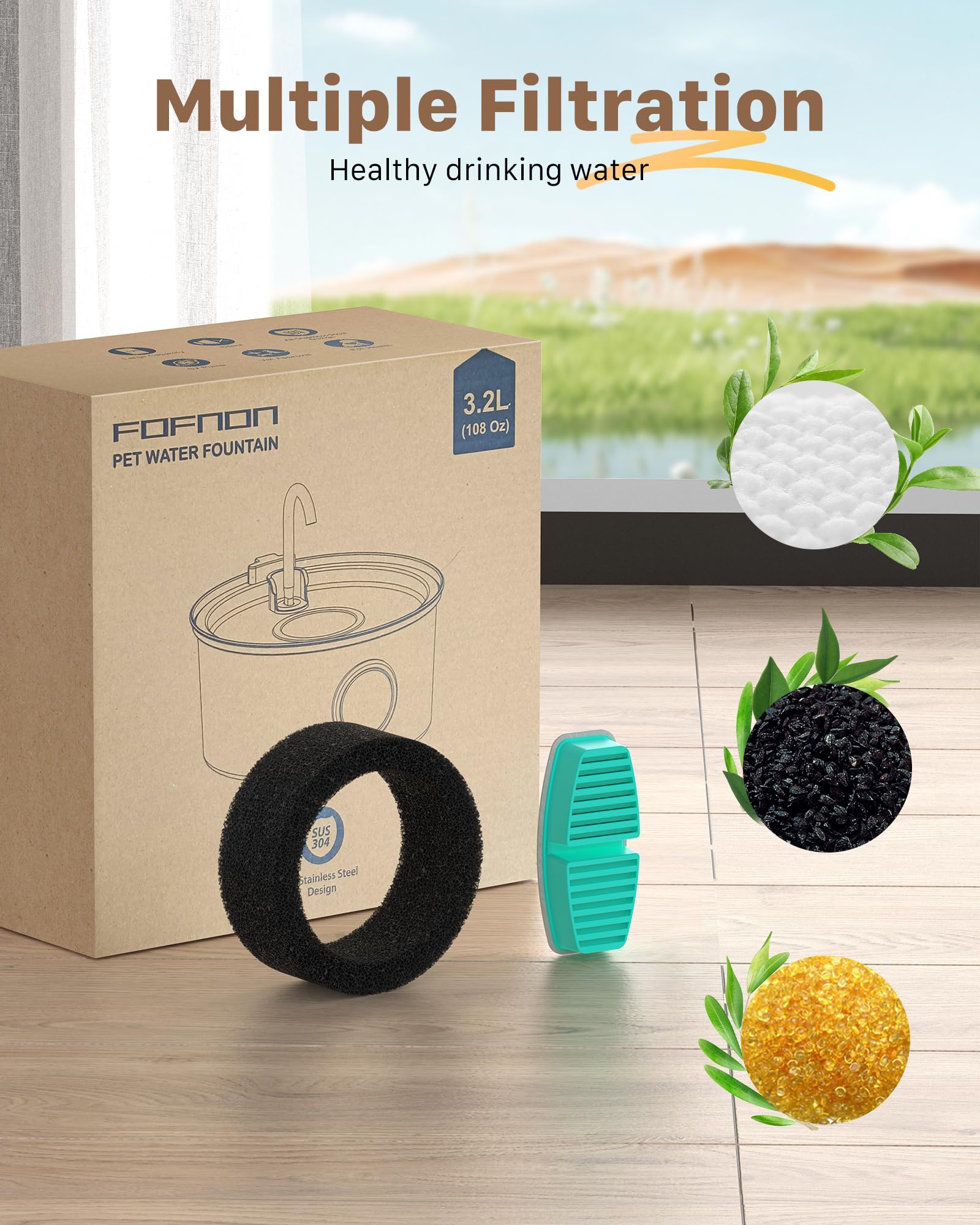 - 【Advantage: Excellent Service】 We will solve the problems you encounter, please contact us. Search "FOFNON filter" and "FOFNON water pump" to find replacement parts. Search "B0CLGPCNHN" for cat water dispenser with 9 filters.