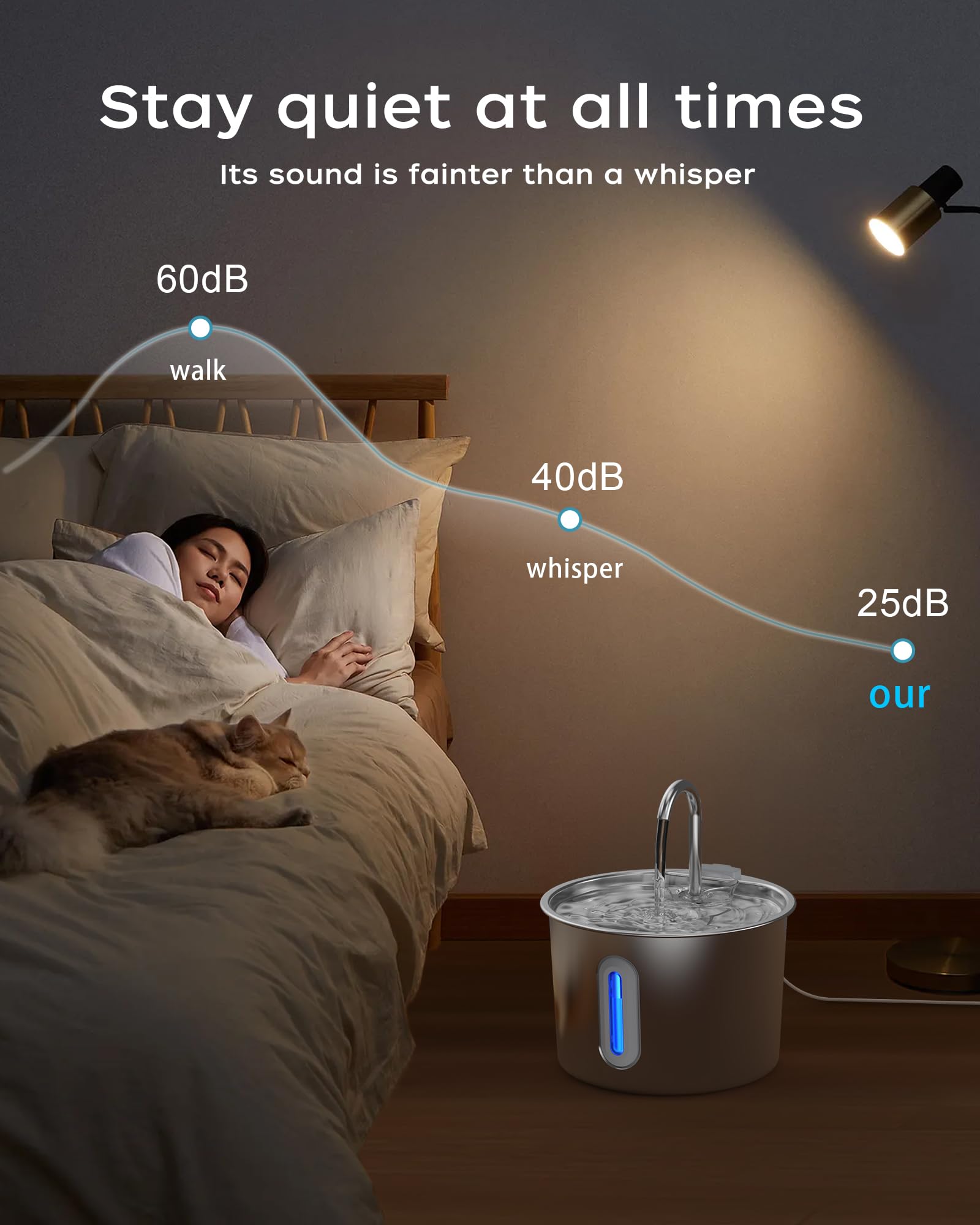 - 【304 Stainless Steel Quality】 This cat water fountain is crafted from high-quality 304 stainless steel,Free from BPA.It is more durable than plastic and easy to clean.Only the stainless steel components are dishwasher safe.