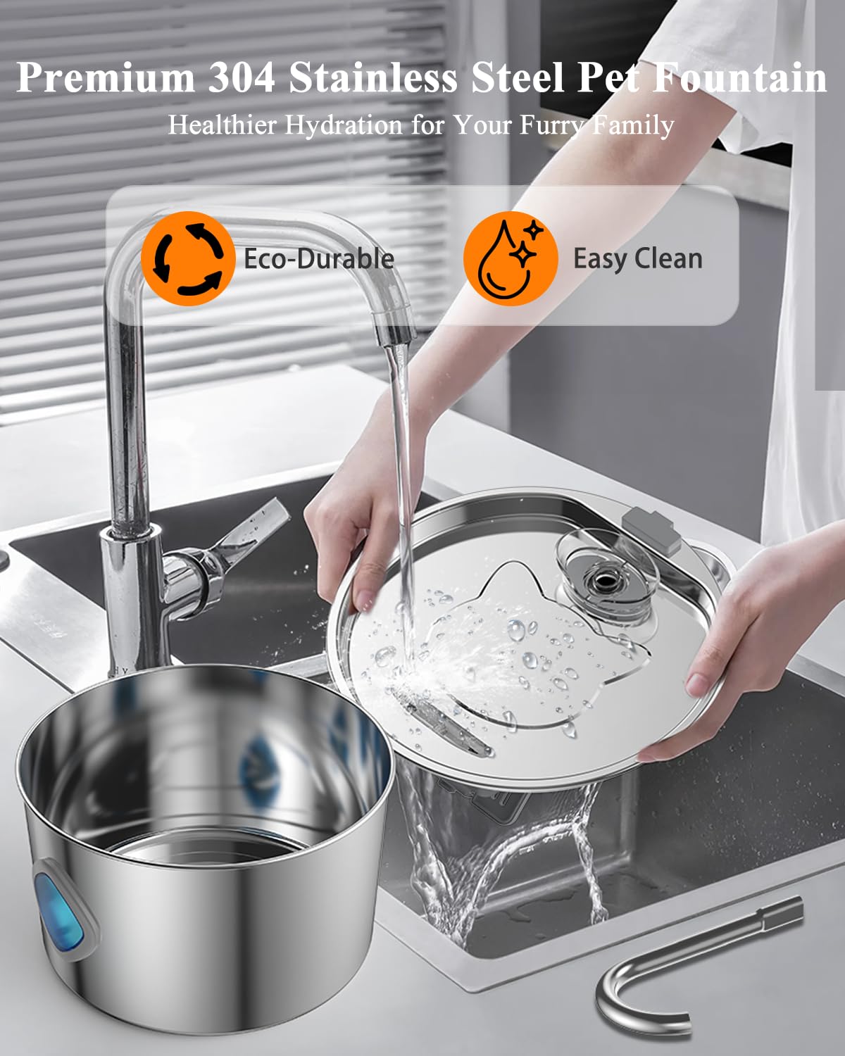 - Premium 304 Stainless Steel: Crafted from premium 304 food-grade stainless steel, this cat water dispenser is more durable and hygienic than plastic dispensers. It’s easy to assembly and disassembly, effortless cleaning, and dishwasher & hand wash safe. Offering your pet a safer, cleaner drinking experience.
