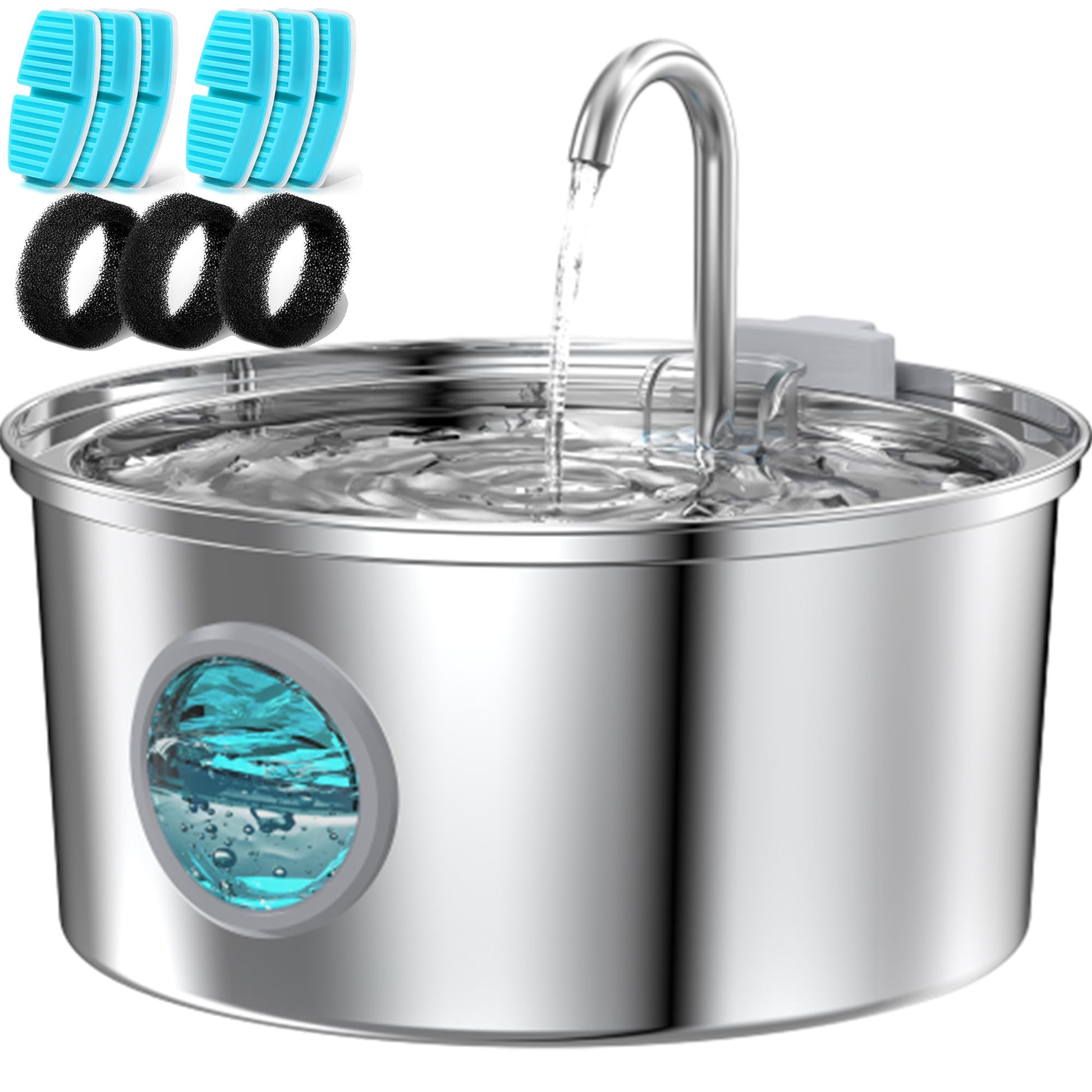 Cat Water Fountain with 6 Filters + 3 Sponge Filters: 108oz/3.2L Cat Fountain - Quiet Water Fountain Indoor Cat - Pet Water Fountain - Water Fountain - Cat Water Fountain Stainless Steel - FOFNON