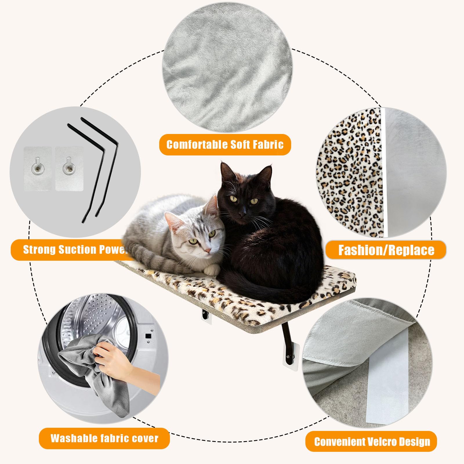- This window sill cat bed comes with two fabric covers, grey and leopard print padded jacket, ready to change, removable and washable, quality foam padding, soft and comfortable.