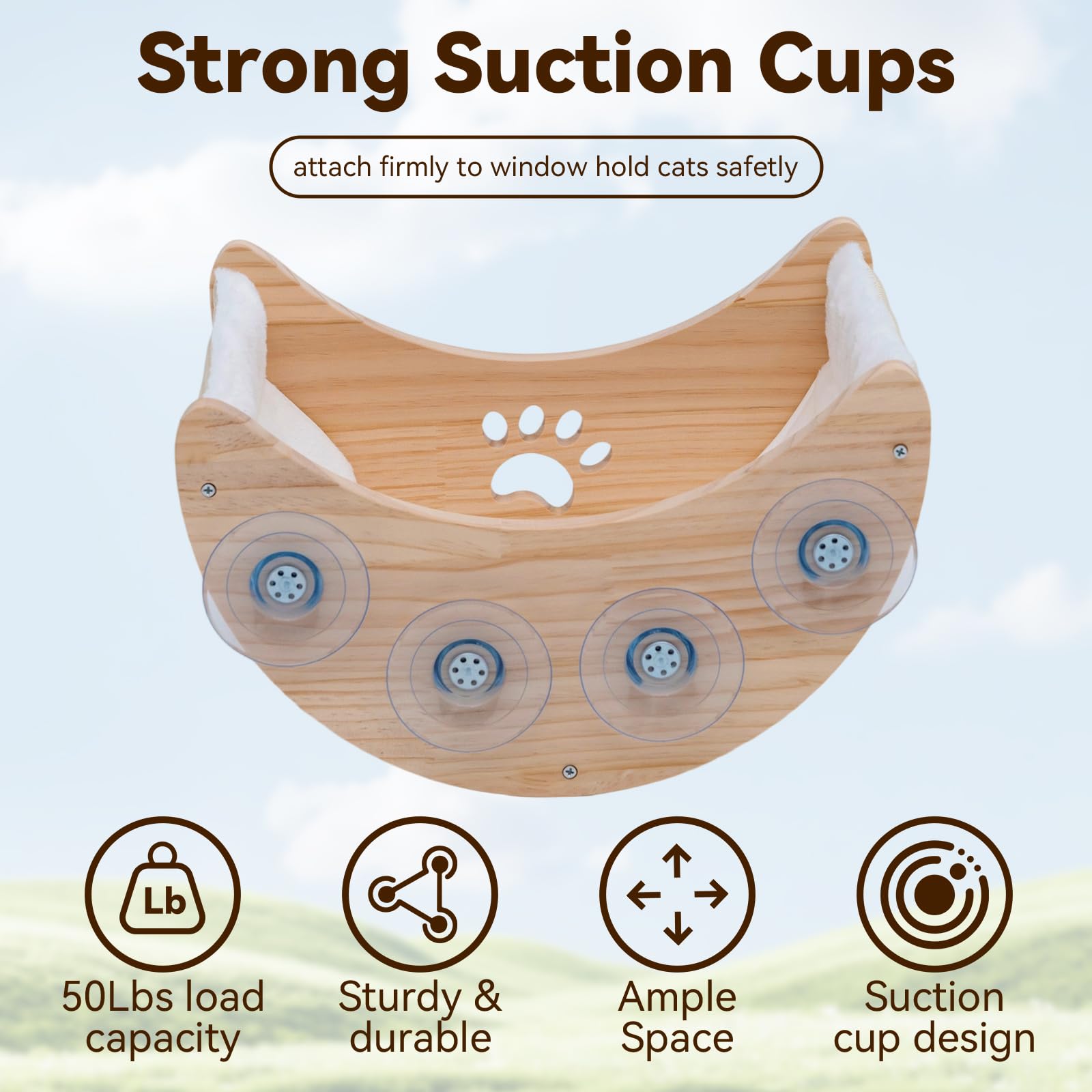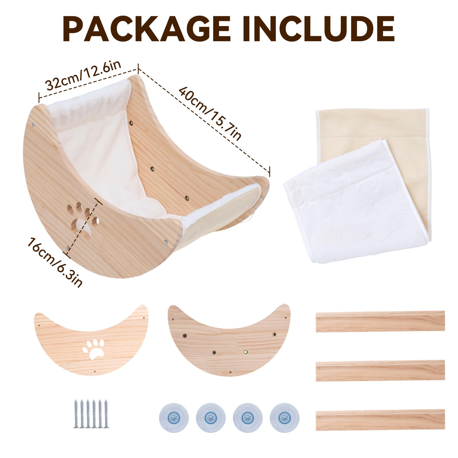 Details: Cat Window Perch Cat Window Hammock Bed Wooden Moon Cat Shelves Mounted Strong Suction Cup Shelvesfor Sleep Watch Birds Sunbathing Holds 50 Pounds Comes with Warm Spacious Pet Bed