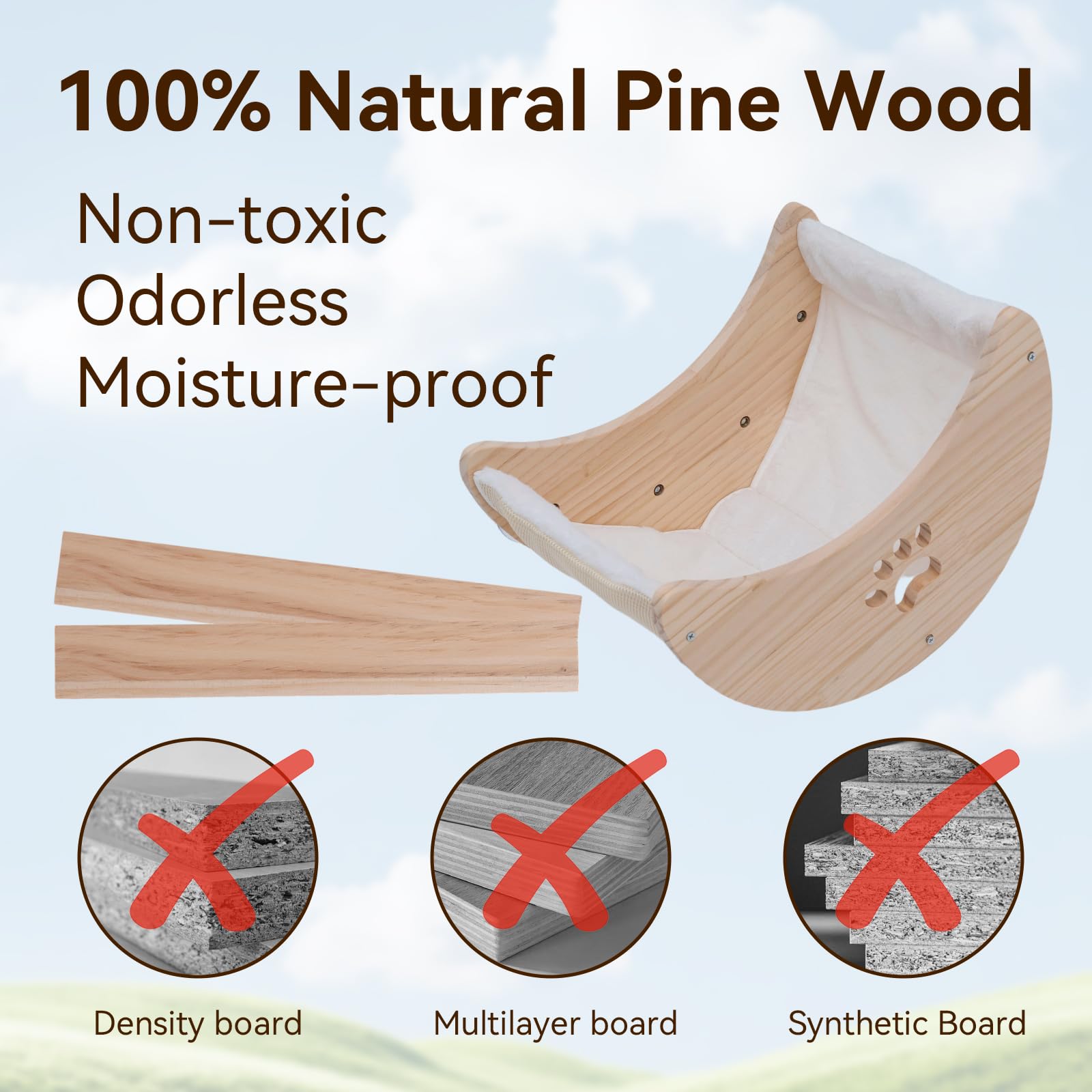 - Quality Wooden Design:Cat Hammock Made from sturdy pine wood, hammock for window is built to last, providing a comfortable resting space for your feline friend. It's suitable for daily use and withstands wear and tear.