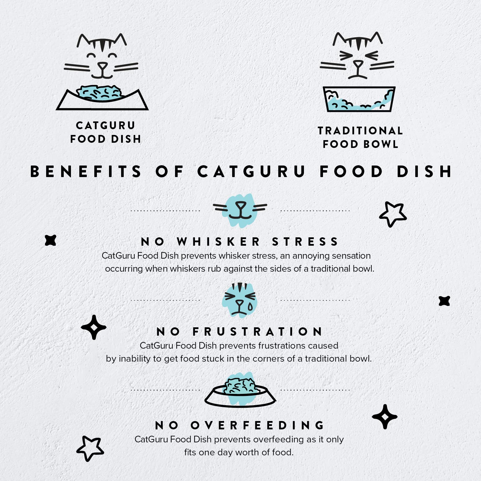 - ⭐️ EASY TO USE. These pet bowls for cats are more durable than ceramic cat bowls. They do not make as much noise as stainless steel cat dishes and do not absorb smell like plastic pet bowls. Dishwasher safe. Do not microwave. For best results use with CatGuru cat food mat tray.