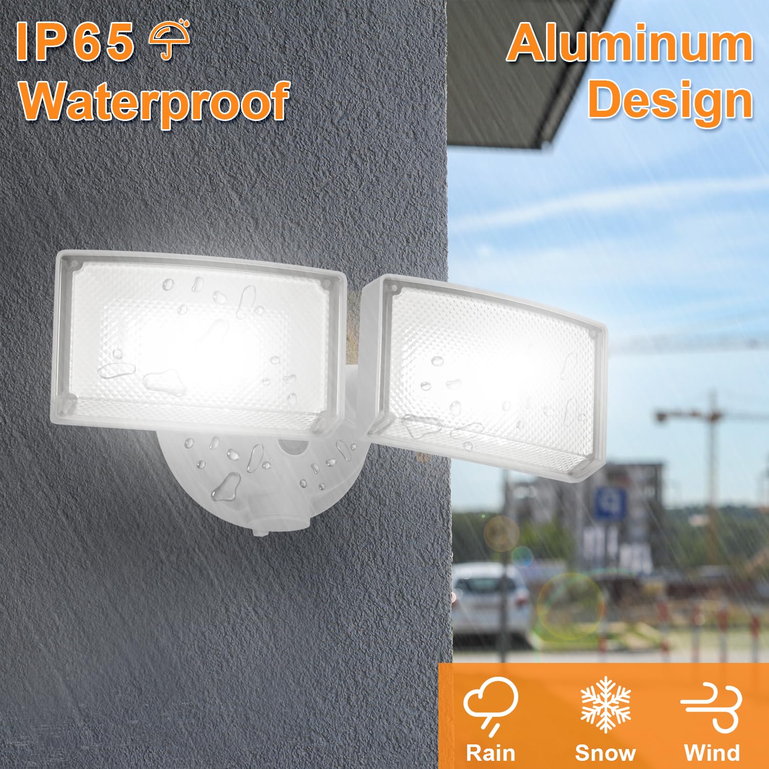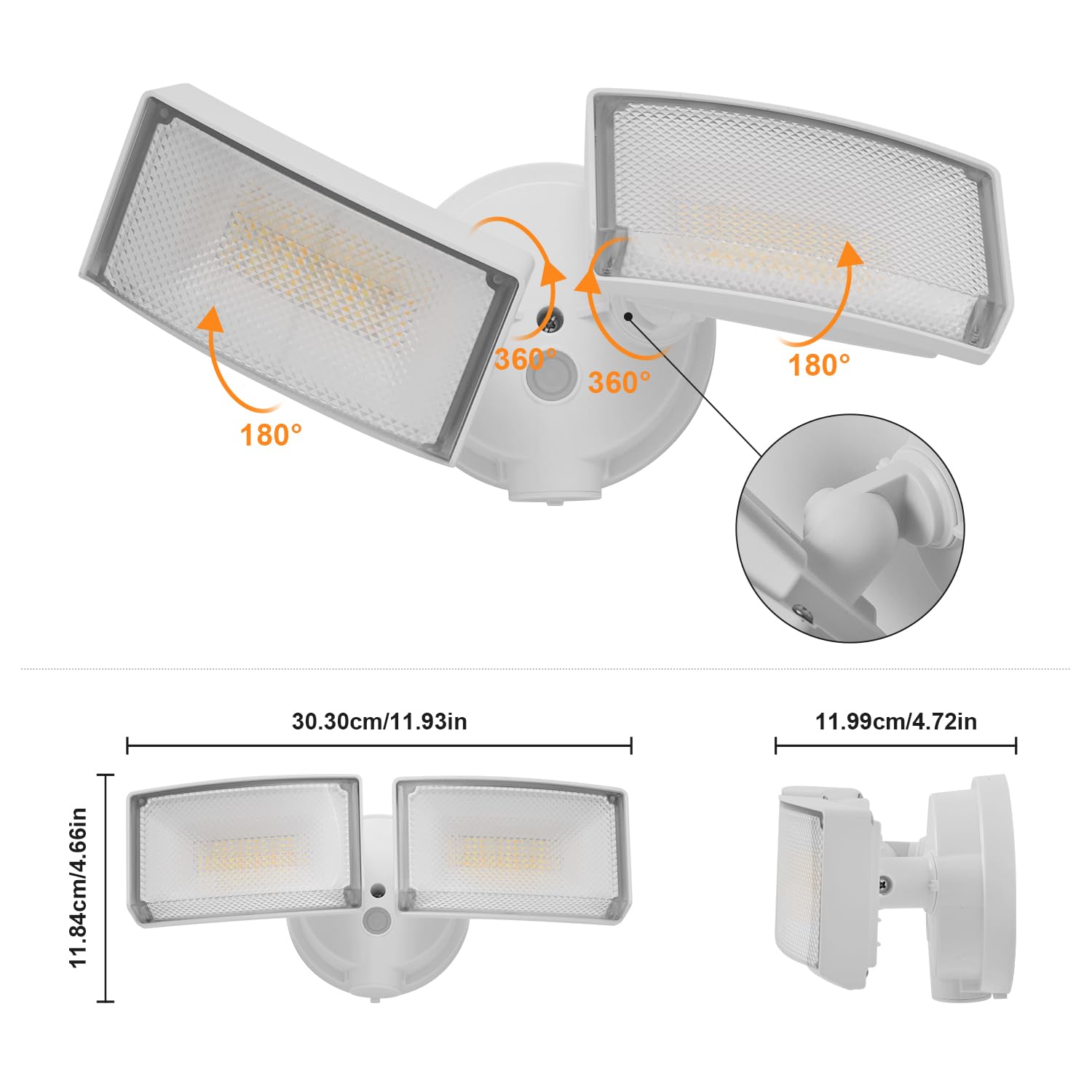- Aluminum Material : Main body of this security light is constructed with aluminum, ensures flexibility and durability while providing excellent heat dissipation