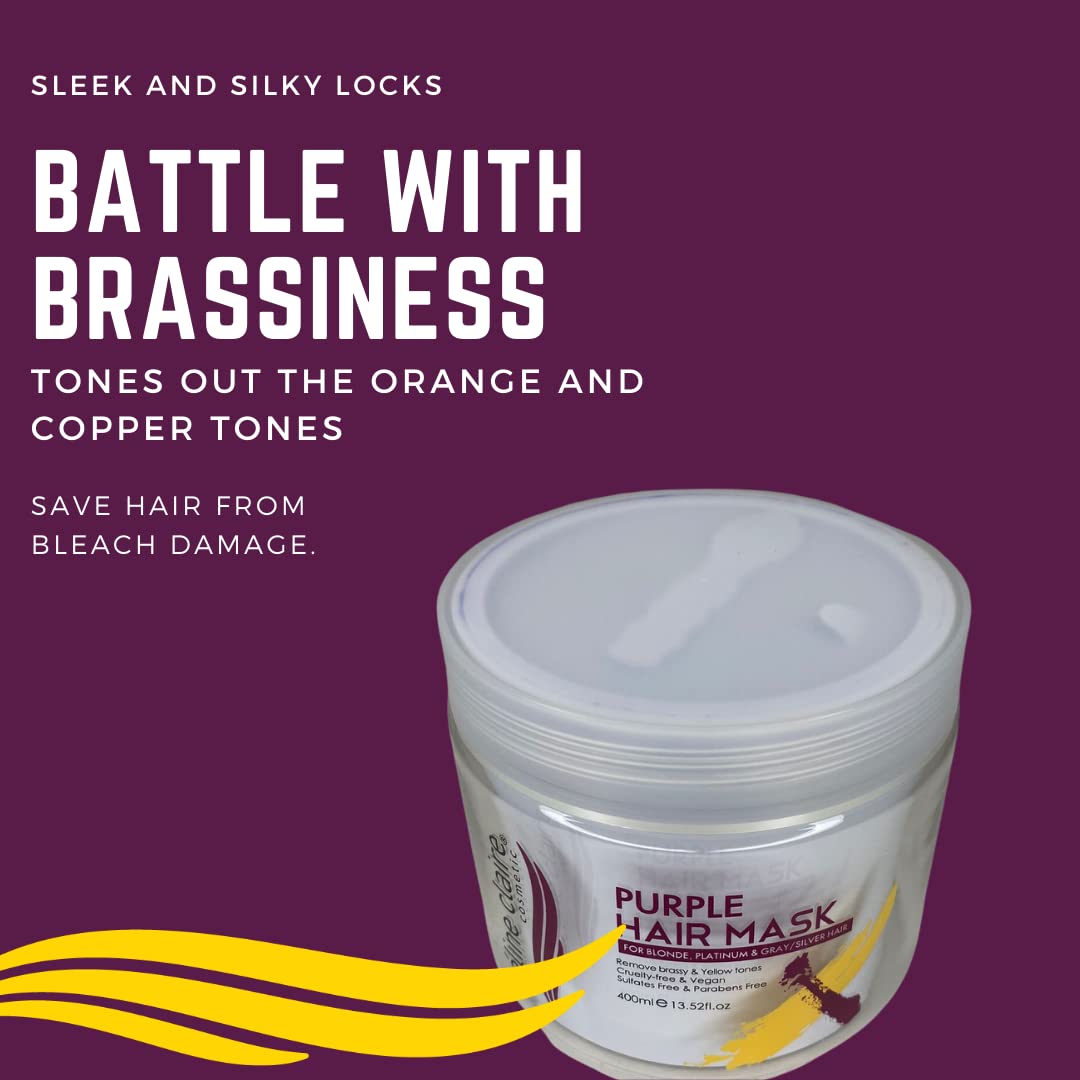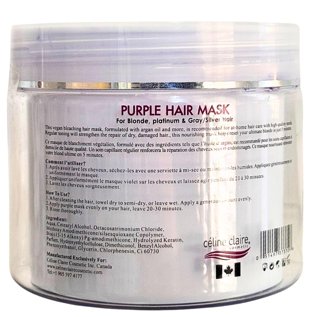 Celine Claire Purple mask for blonde hair highlighted hair Silver and Grey hair | toning no yellow hair mask | suitable for dry damaged hair | aiming to remove brassiness while providing treatment to your hair.
