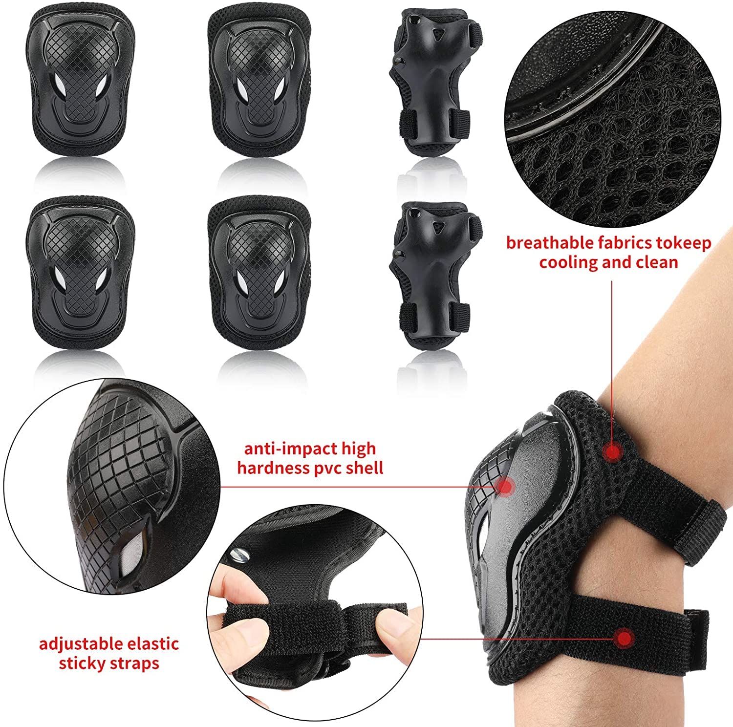 CELOID Kids Helmet Pad Set,Adjustable Kids Skateboard Bike Helmet Knee & Elbow Pads Wrist Guards 10-14-16 Years Kids,Protective Gear Set for Girls Boys Bicycle Roller Scooter Sport,Black