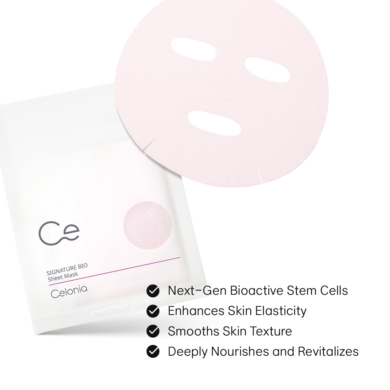 CELONIA Signature Bio Facial Sheet Mask, Stem Cell Deep Hydrating Face Mask, Anti Aging Treatment For Healthy Glowing Skin, Minimize Pores, Reduce Fine Line, Boost elasticity, Correct Redness 5PC
