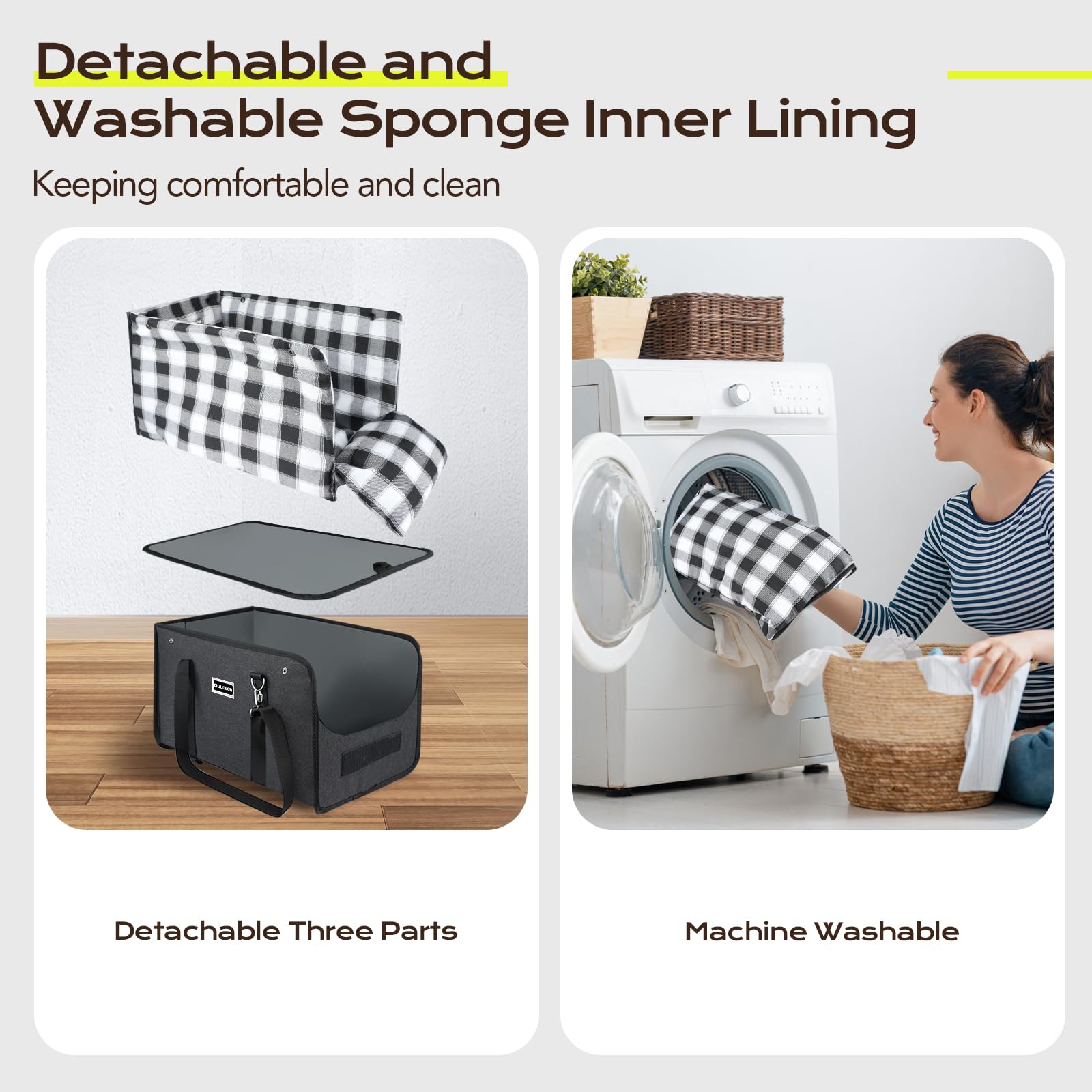 1.Easy-Clean & Machine-Washable – Removable inner lining with soft sponge cushion can be tossed in the washing machine for quick cleanup after messes or spills.