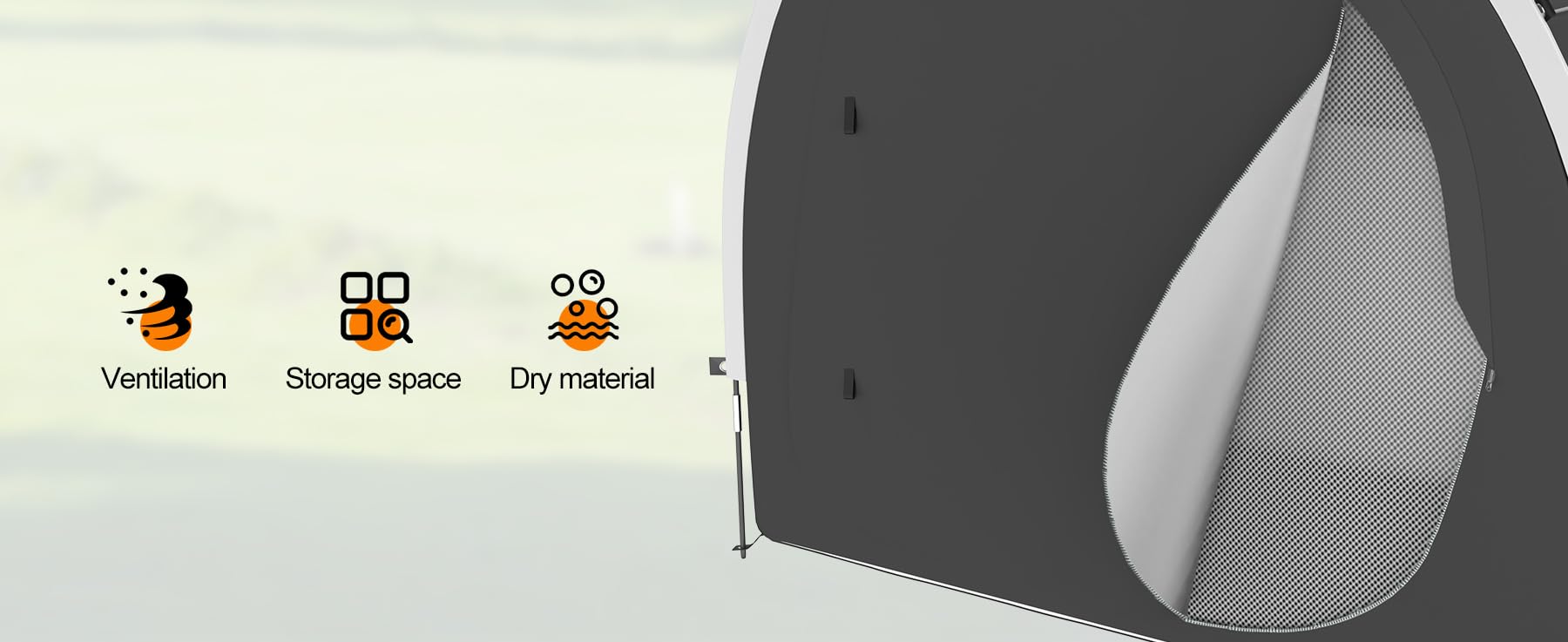 - 【Multi-scenario Application storage tent】;This storage tent is designed to hold various items likebicycles, Ebikes, motorcycles, mobility scooters, ATVs, UTVs, garden tools, toys, lawn mowers, and similar belongings. It also works as a regular tent for relaxation. Its charm is the multiple protections it offers: rainproof, windproof, sunproof, dustproof and mosquito-proof, ensuring a nice and safe experience.