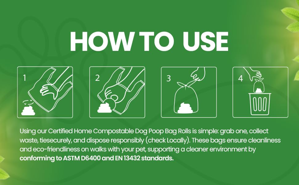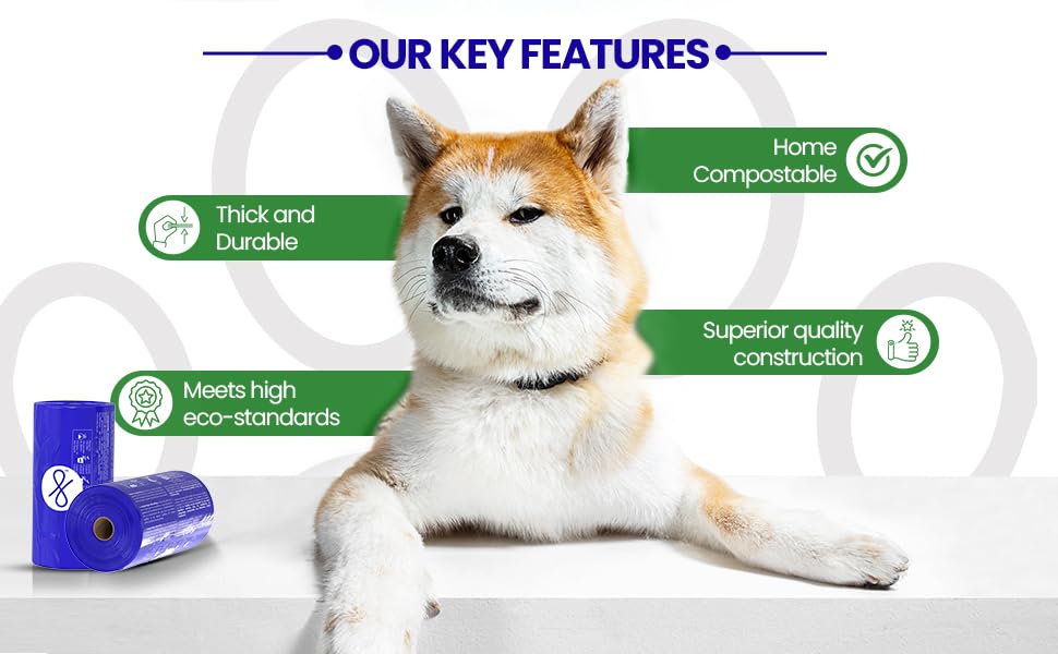 - HOME COMPOSTABLE DOG POOP BAG ROLLS: Essential for every dog owner, our high-quality bags are portable and fit almost all dispensers for easy access during walks.