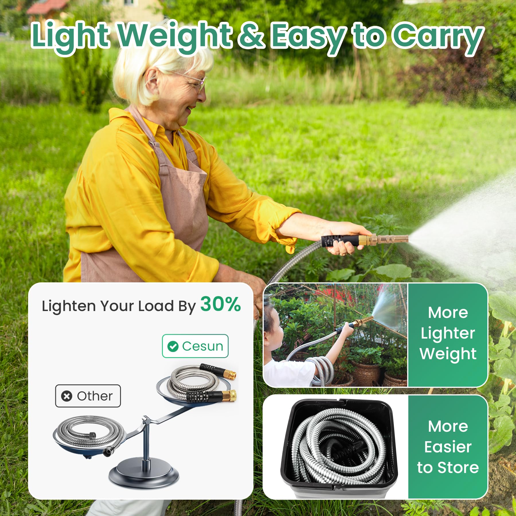 - FLEXIBLE, LIGHTWEIGHT & KINK FREE DESIGN: Engineered for flexibility, our metal garden hose effortlessly navigates around corners and obstacles, maintaining a kink free and tangle free experience. Despite its strength, it's surprisingly lightweight, simplifying handling and storage