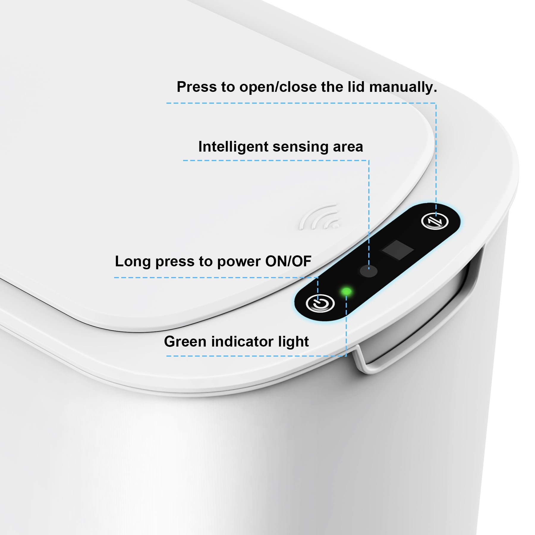 - Countdown Light: If your hand stays in the sensing area, the green light is always on and the lid remains open. When your hand leaves, the green light starts flashing and the lid closes automatically after 5 seconds