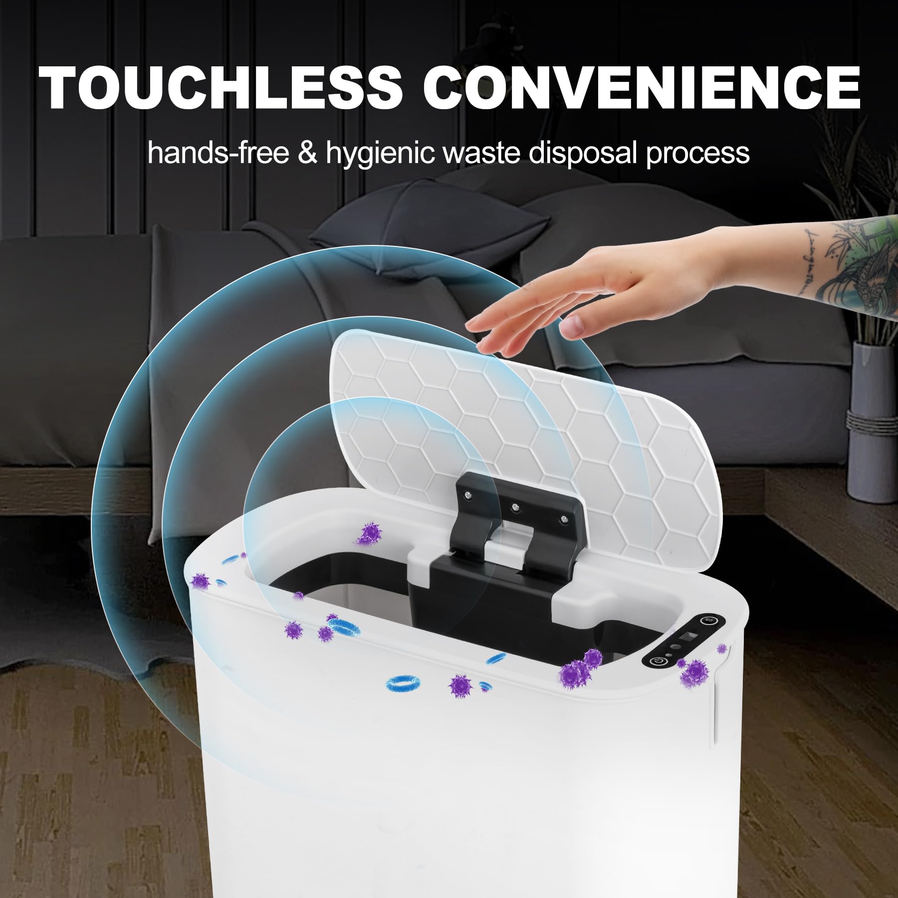 Cesun Motion Sensor Trash Can, 5 Gallon Automatic Bathroom Garbage Can with Lid, Touchless Smart Plastic Slim Wastebasket for Bathroom, Office, rv, Bedroom, Living Room, White