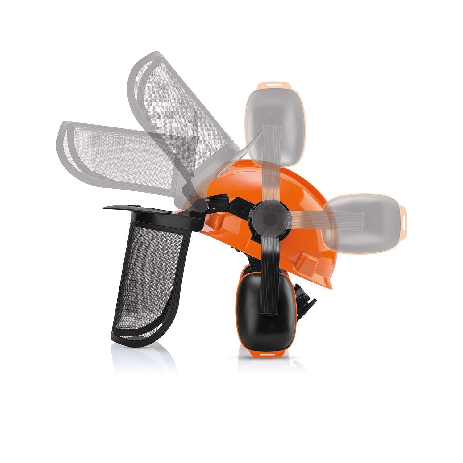 - HEARING PROTECTION. Professional Forestry Helmet comes with an adjustable mesh visor for protection from flying debris, a polycarbonate face shield for extra eye protection, and a pair of adjustable 23 dB SNR earmuffs that drastically reduce noise for hearing protection.