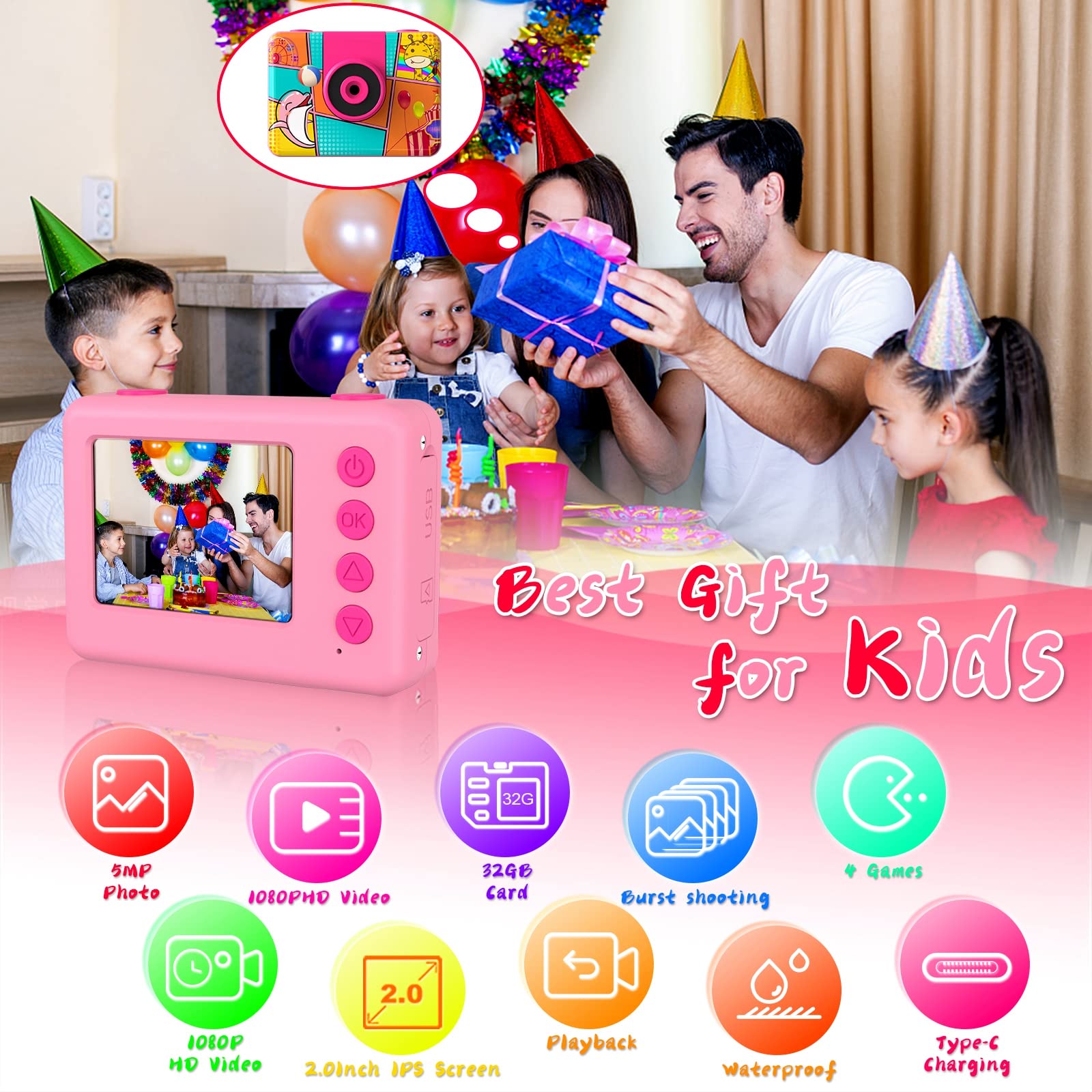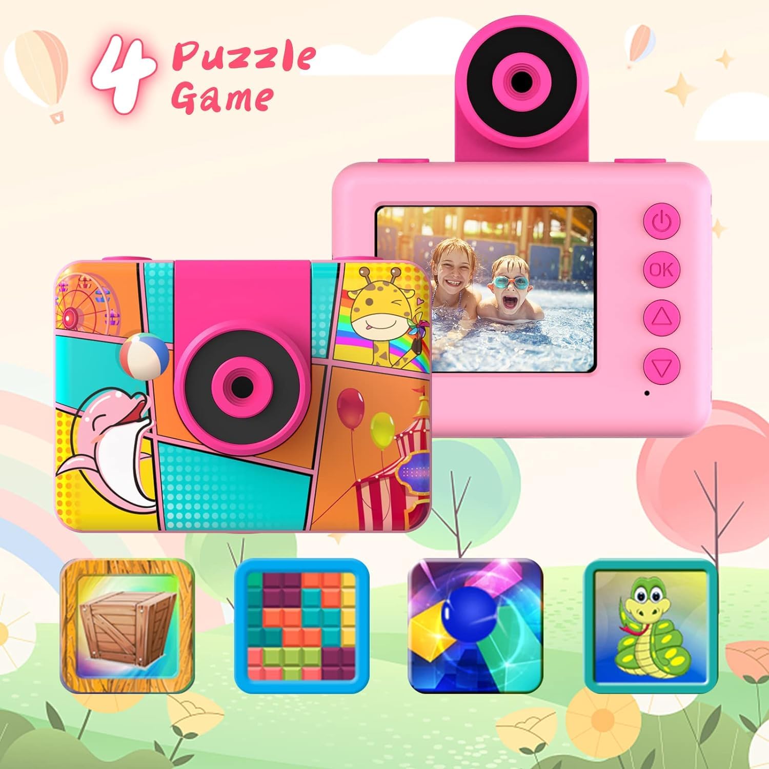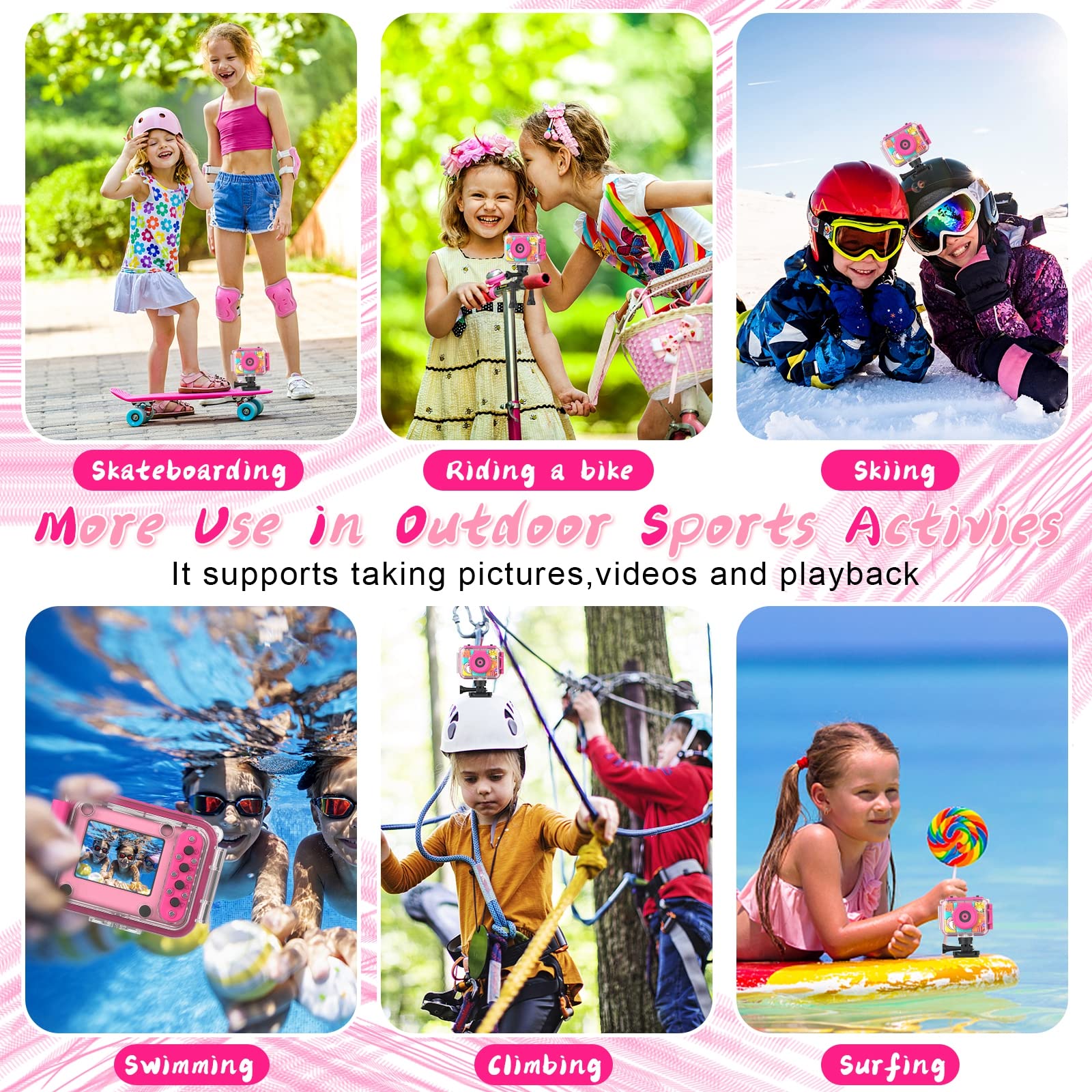 - 🌊📸【Kids Waterproof Camera Underwater】This toddler camera is a waterproof and shockproof camera designed for children. Equipped with a shockproof housing to protect against drops.The waterproof camera for kids excels in water and outdoor activities. This kids underwater camera can dive up to 100 feet (30 metres) deep. Kids can use the camera to capture great images while swimming, skiing, biking, skateboarding and other activities. Kids can record important fun moments with their family.