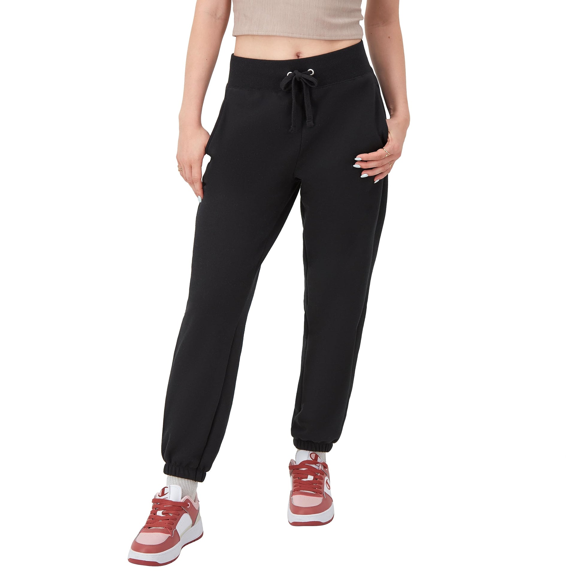 Champion Women's Joggers, Powerblend Fleece Joggers, Comfortable Sweatpants for Women, 27", Black C Patch Logo, XX-Large