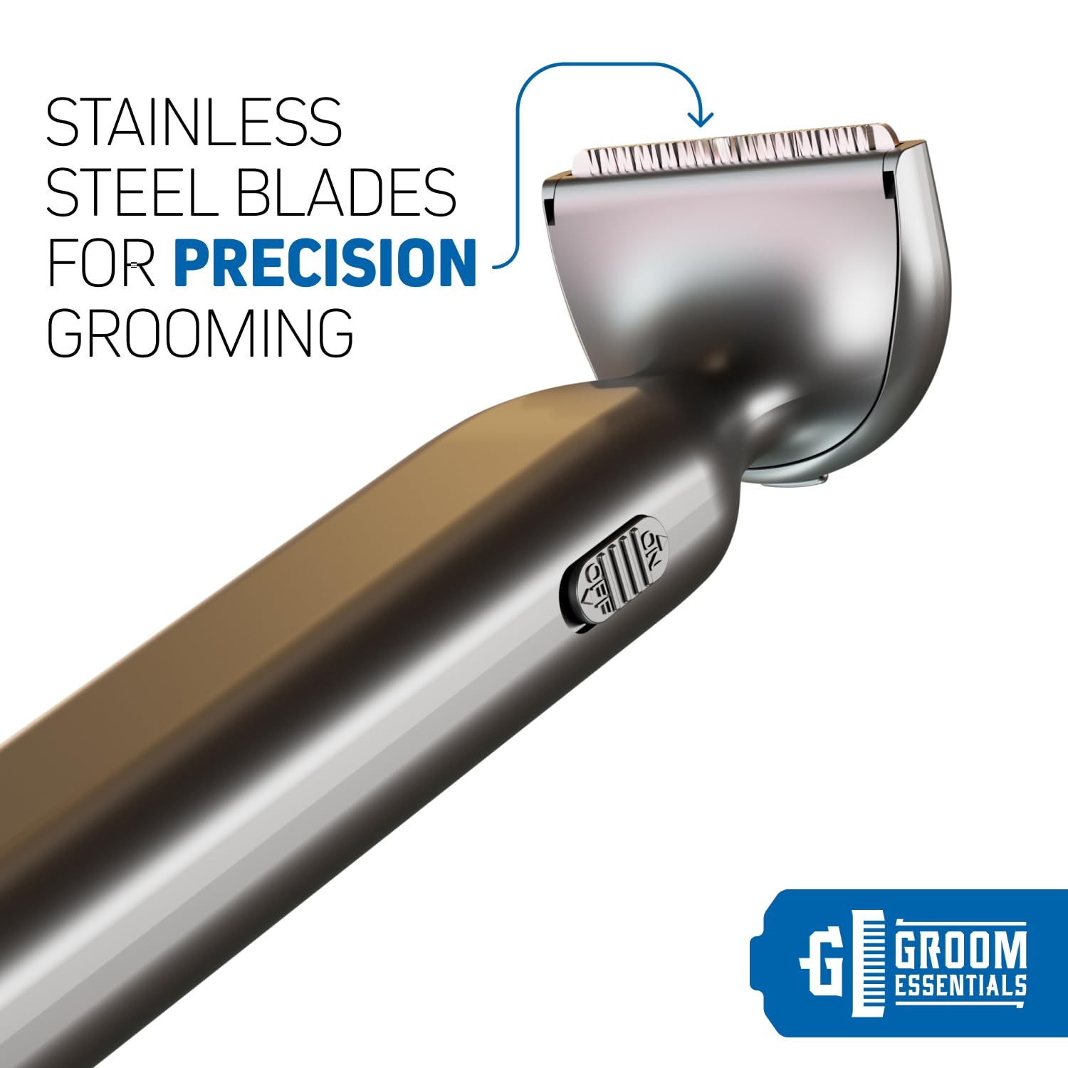 - Electric Shaver with Powerful Motor for Easy Shaving: Perfect for men with thick and long back hair, the Groom Essentials Electric Back Shaver’s powerful motor ensures hassle-free shaving. Engineered for a smooth shaving experience, our electric motor and sharp high-quality stainless-steel blades help prevent nicks and cuts, especially on hard-to-reach areas.