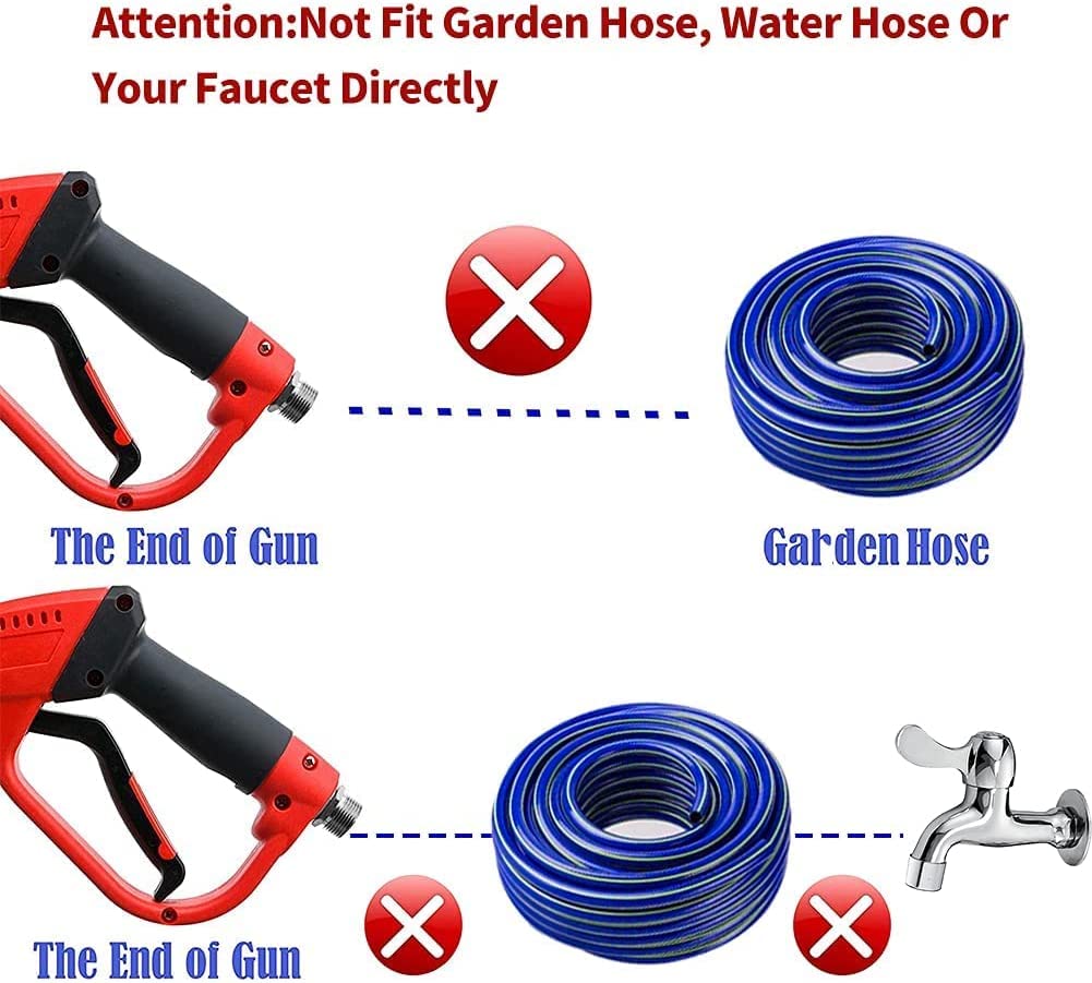 Not suitable for water pipes and garden hoses.If the hose has a M22-14mm connector with an inner diameter of 14mm, you can connect it directly to the hose. If there is a 15mm M22-15mm fitting on the hose, we provide a brass fitting to connect the spray gun to the hose. Wrap the fluoro tape when connecting to prevent leakage during use.