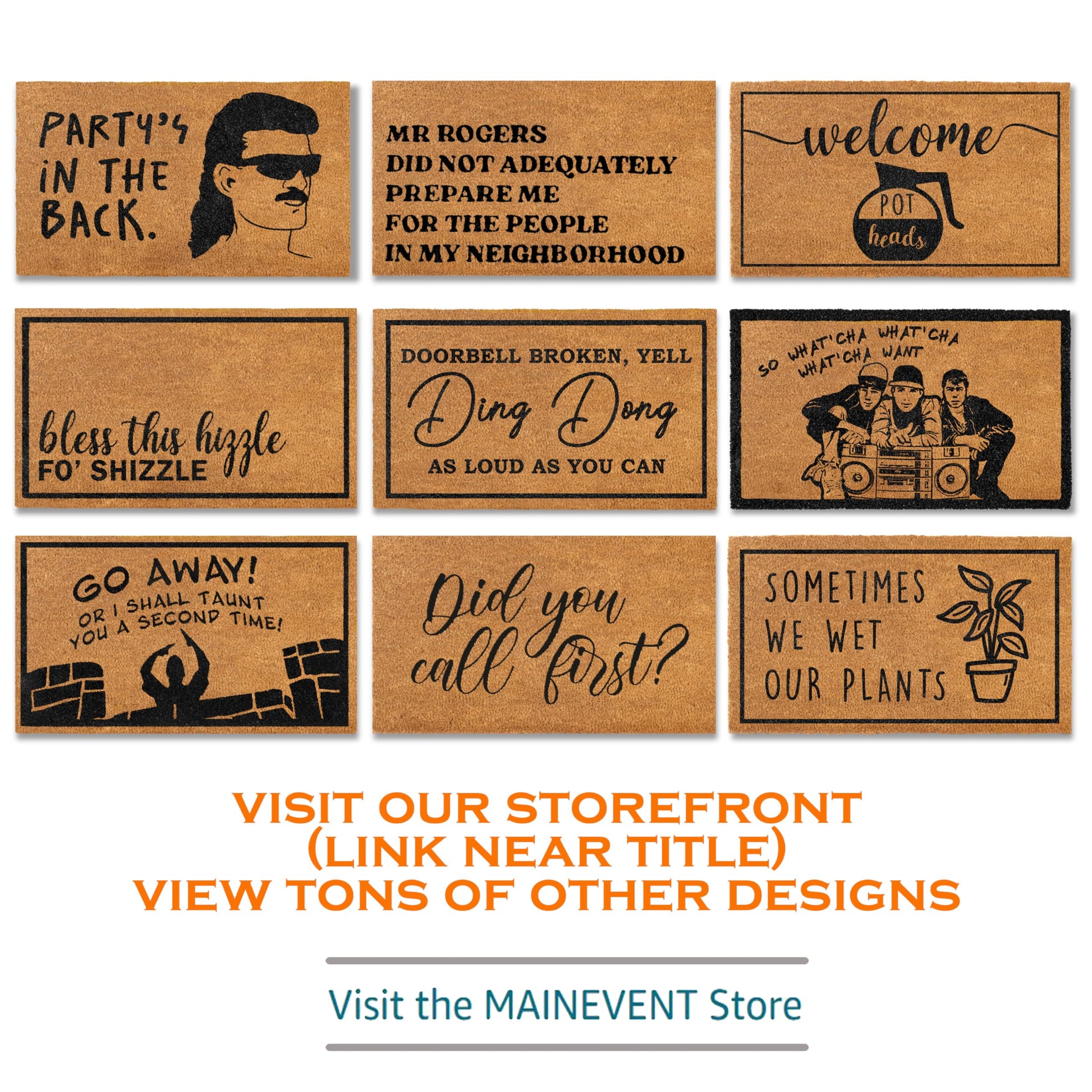 - Choose from a variety of funny door mats for outside entry with paint that goes right into the fibers so your front door mat with funny quote won't wear off quickly