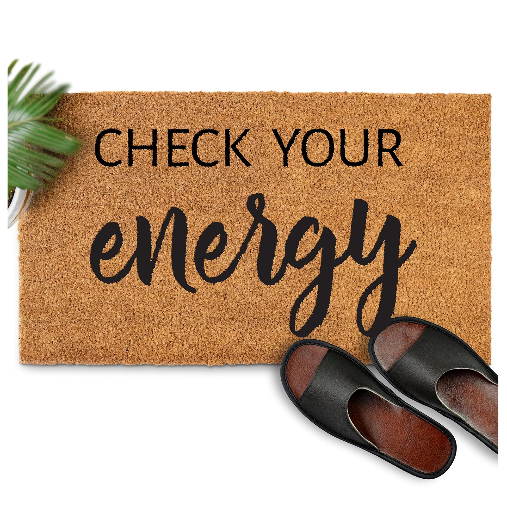 - Made from tightly woven coco fibers .6 inch in height, our check your energy doormat for outside is a welcome mat outdoor with funny design made to endure frequent use; Sturdy check your energy outdoor doormat is funny and practical