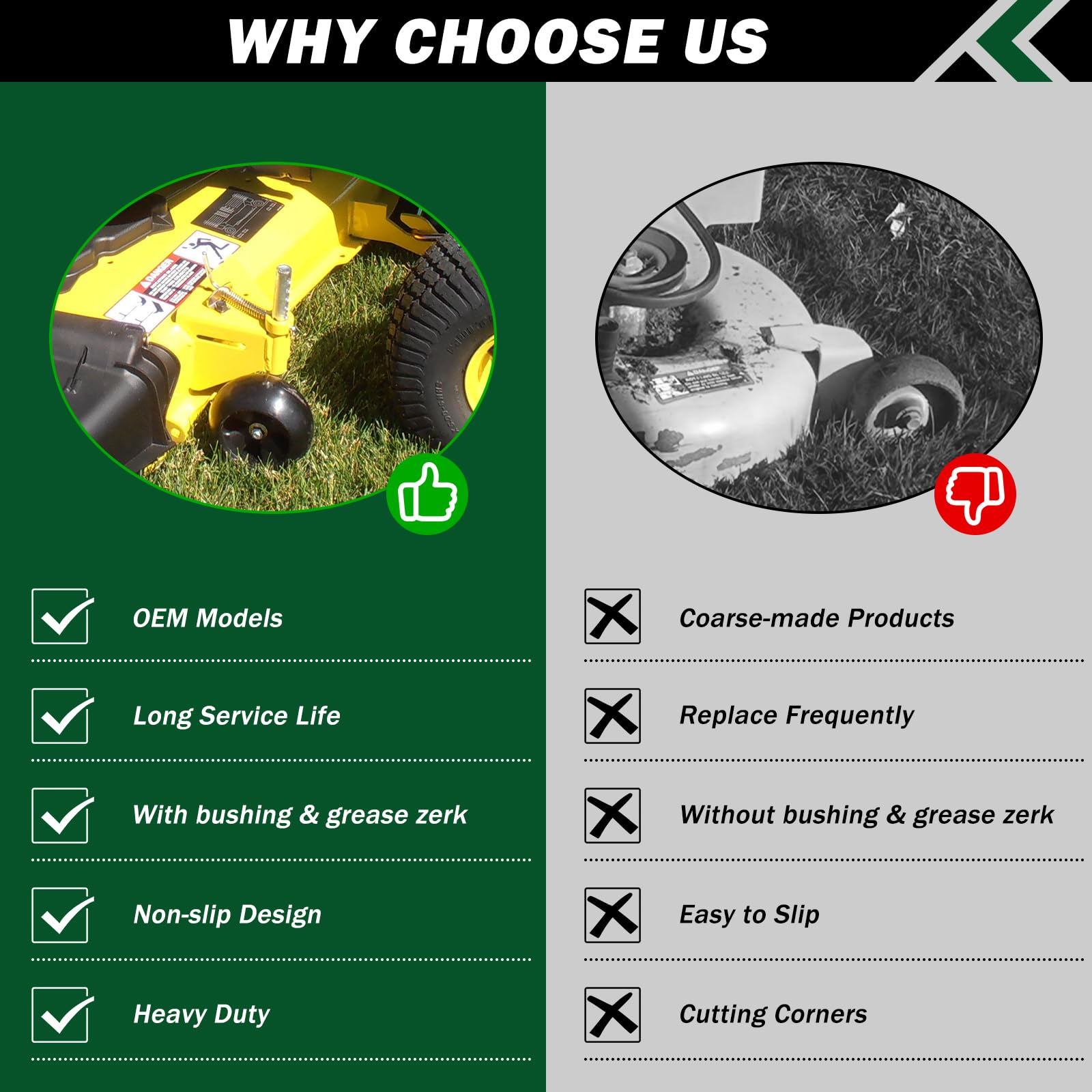 - 【Wide Application】The Gauge Wheel Kit is fit for John Deere 48" 54" 60" 72" Deck, for 200, 300, 400, GT, GX, LT, LX, X400, X500 and X700 Series. Replacement for AM125172, AM124706, 210-300.