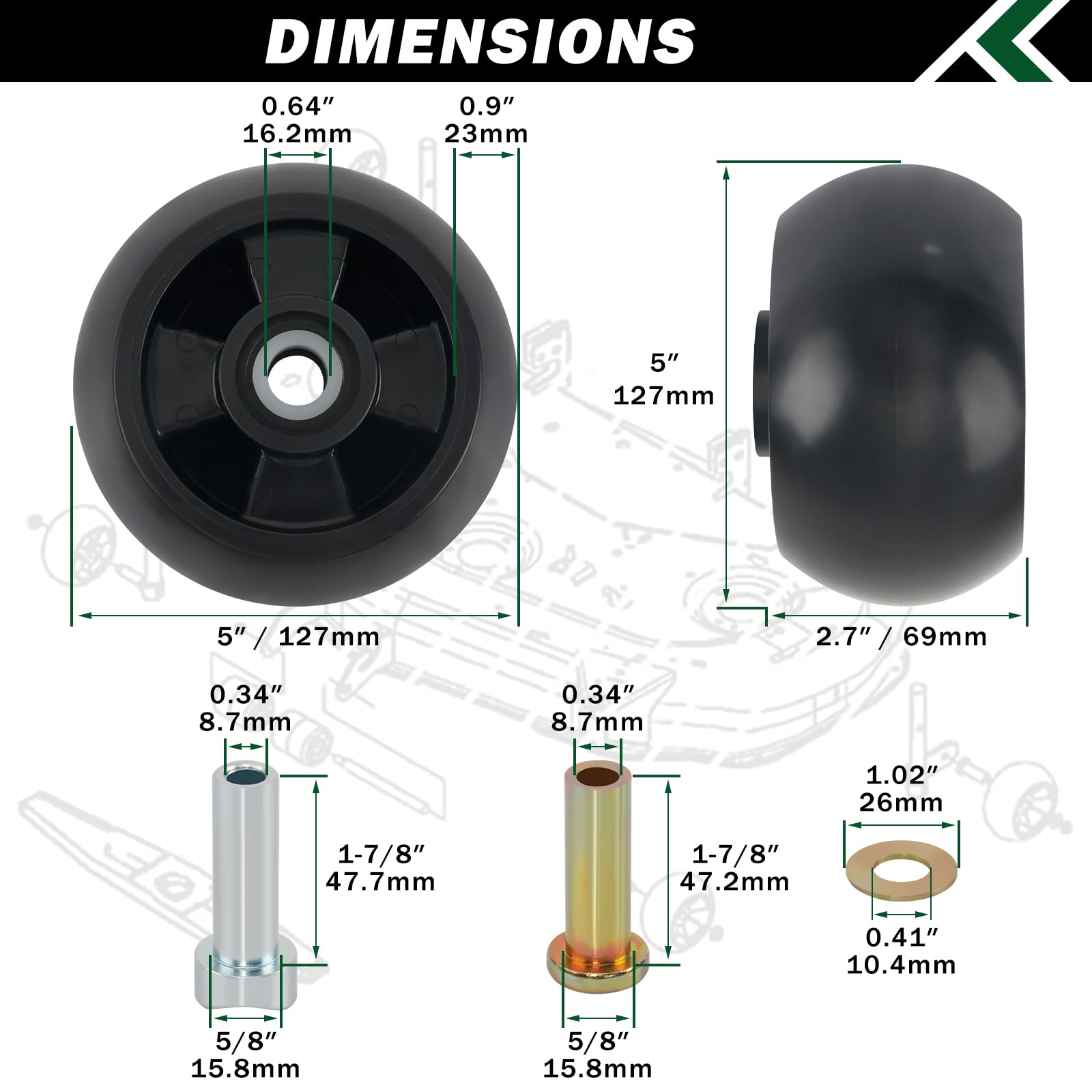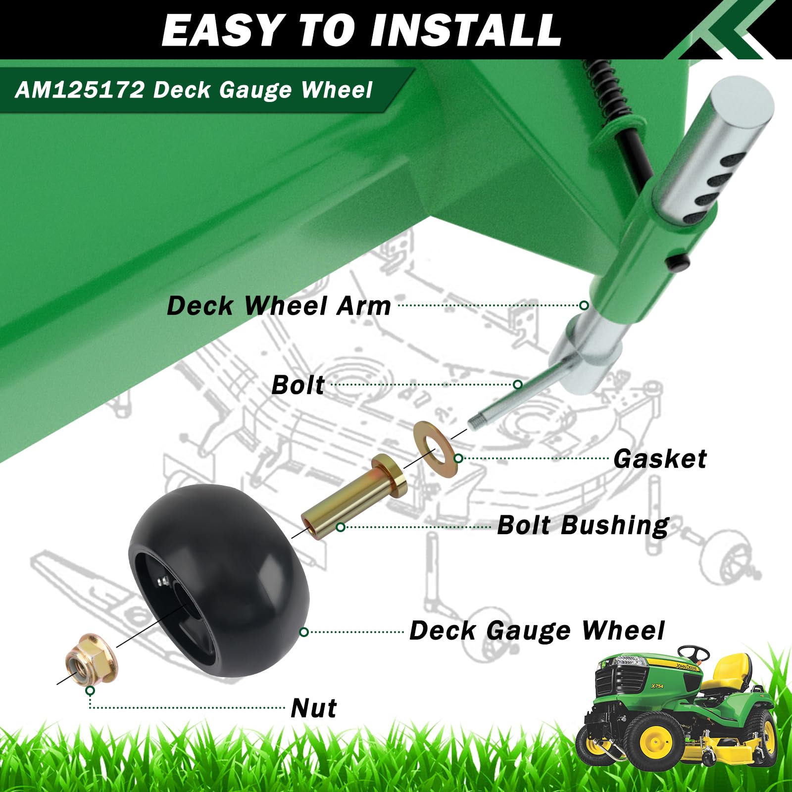 CheeMuii 4 Pack AM125172 Lawn Mower Deck Gauge Wheels Kit Fit for John Deere 48", 54", 60", 62“, 72" Deck Replace for AM125172 AM124706 210-300