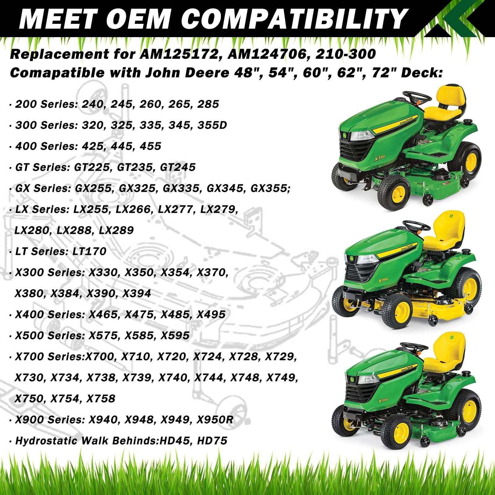 Comapatible with John Deere 48", 54", 60", 62", 72" Deck Lawn Mowers, AM124706, 210-300