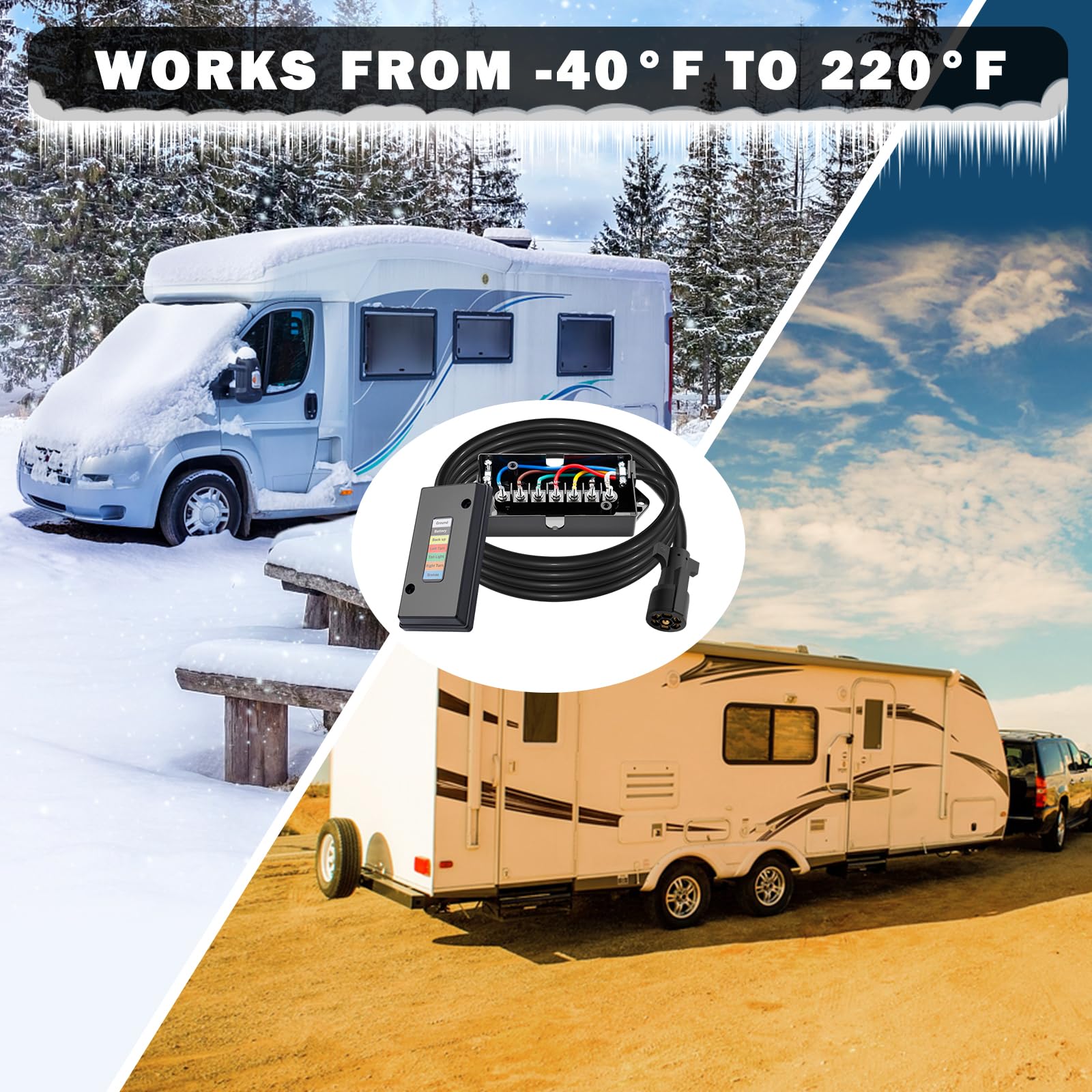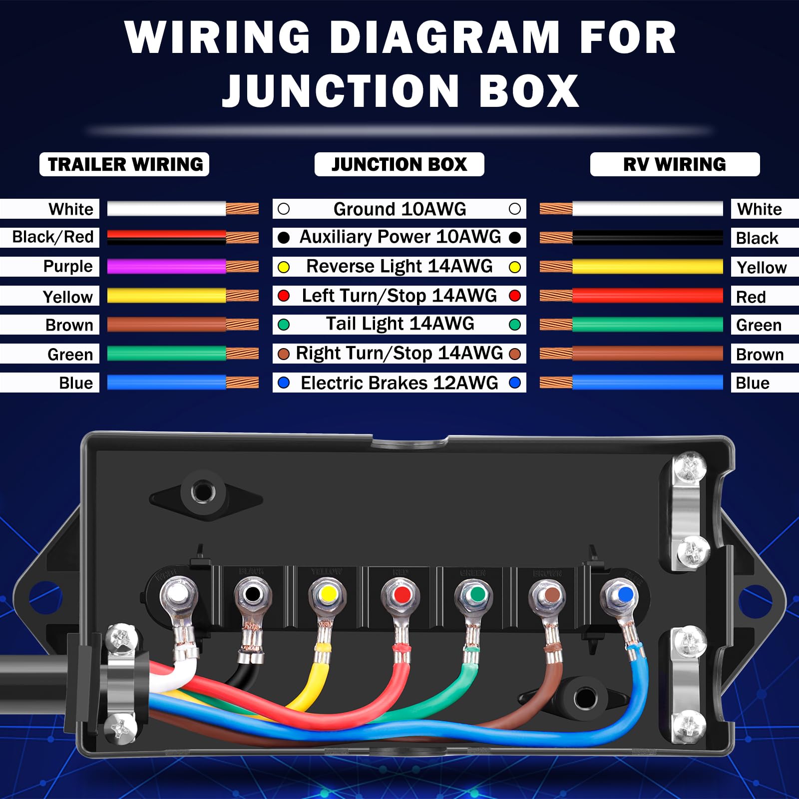 - JUNCTION BOX: The junction box is equipped with 7 color-coded terminals and wires, which can easily identify the corresponding functions of the wires and facilitate wiring. Strong junction boxes are waterproof and dust resistant to increase the service life of trailer cords