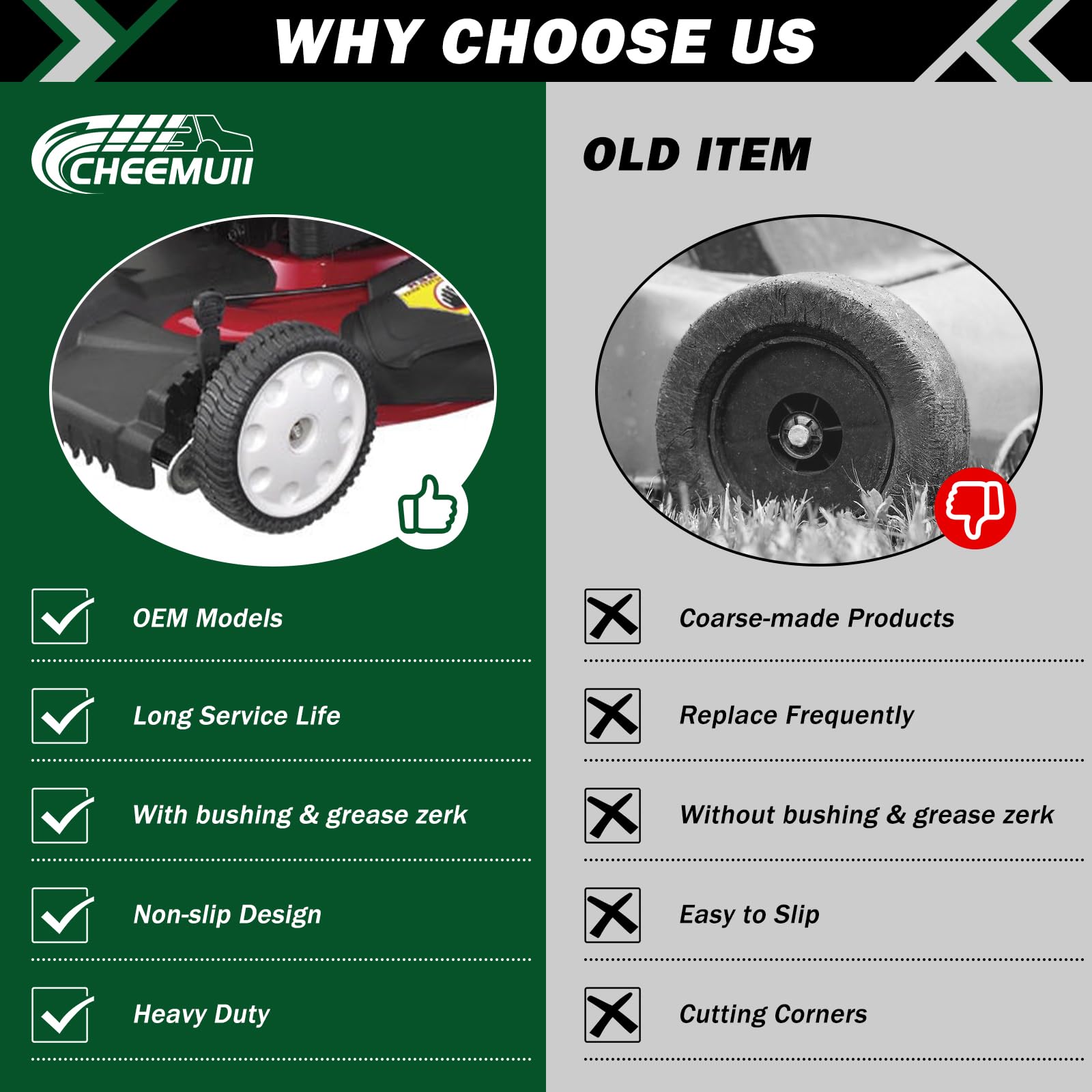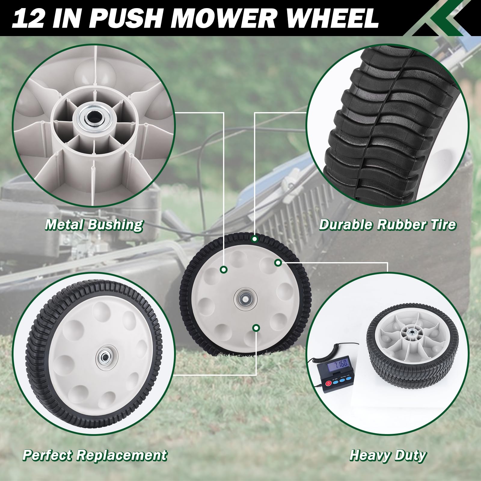 Details: CheeMuii 734-04019 Lawn Mower Rear Wheels 2 Pcs 12" Push Mower Back Drive Wheels Replace for MTD 734-04127 734-04019 Compatible with Troy Bilt Most Walk-Behind Push Lawn Mower