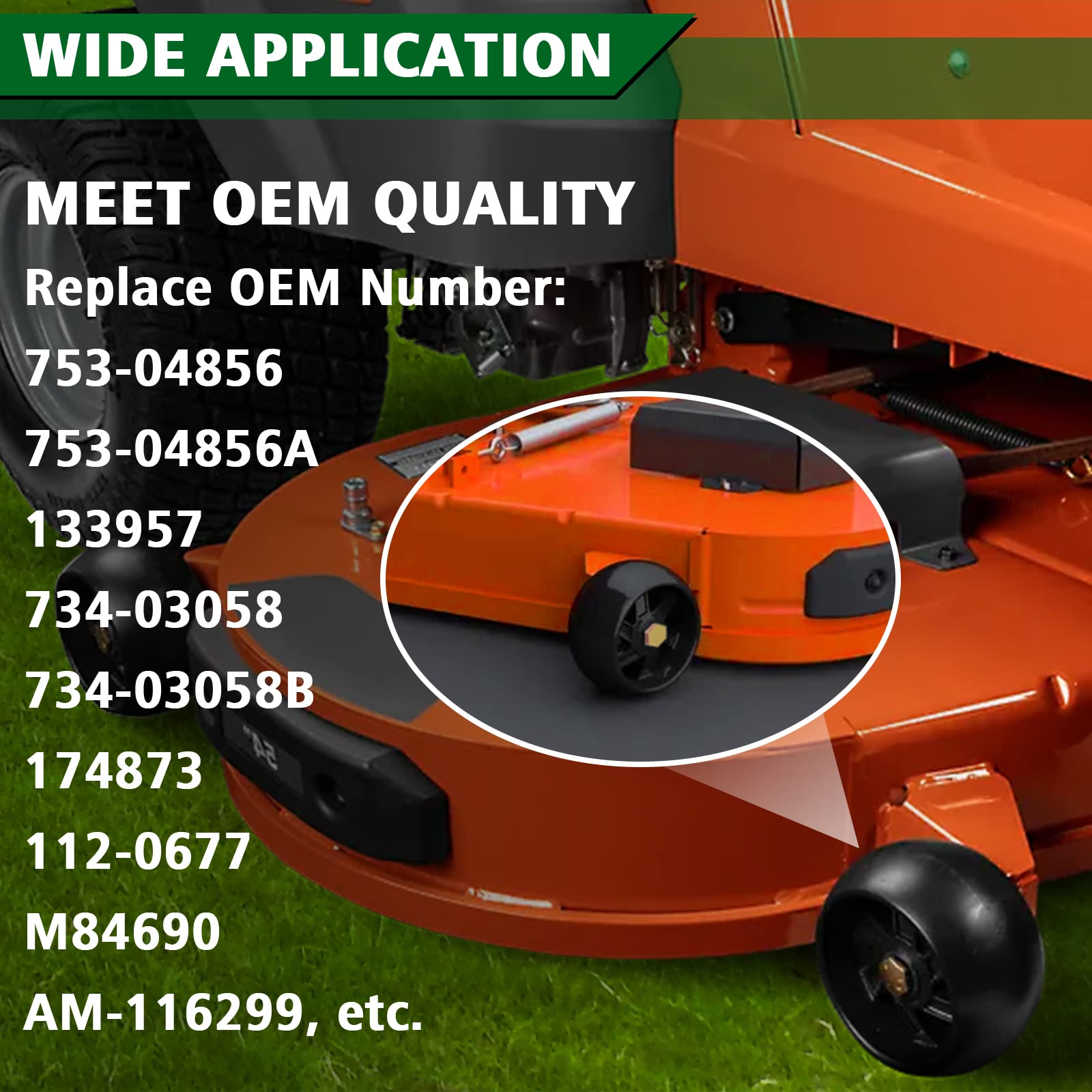 Details: 8 PCS Mower Deck Wheels Kit for Husqvarna 532174873 589527301, for Craftsman MTD AYP 174873 133957 532133957 734-3058, for Cub Cadet 734-04155, Fit for most 42" 46'' 48'' 50" 52'' and 54" Decks