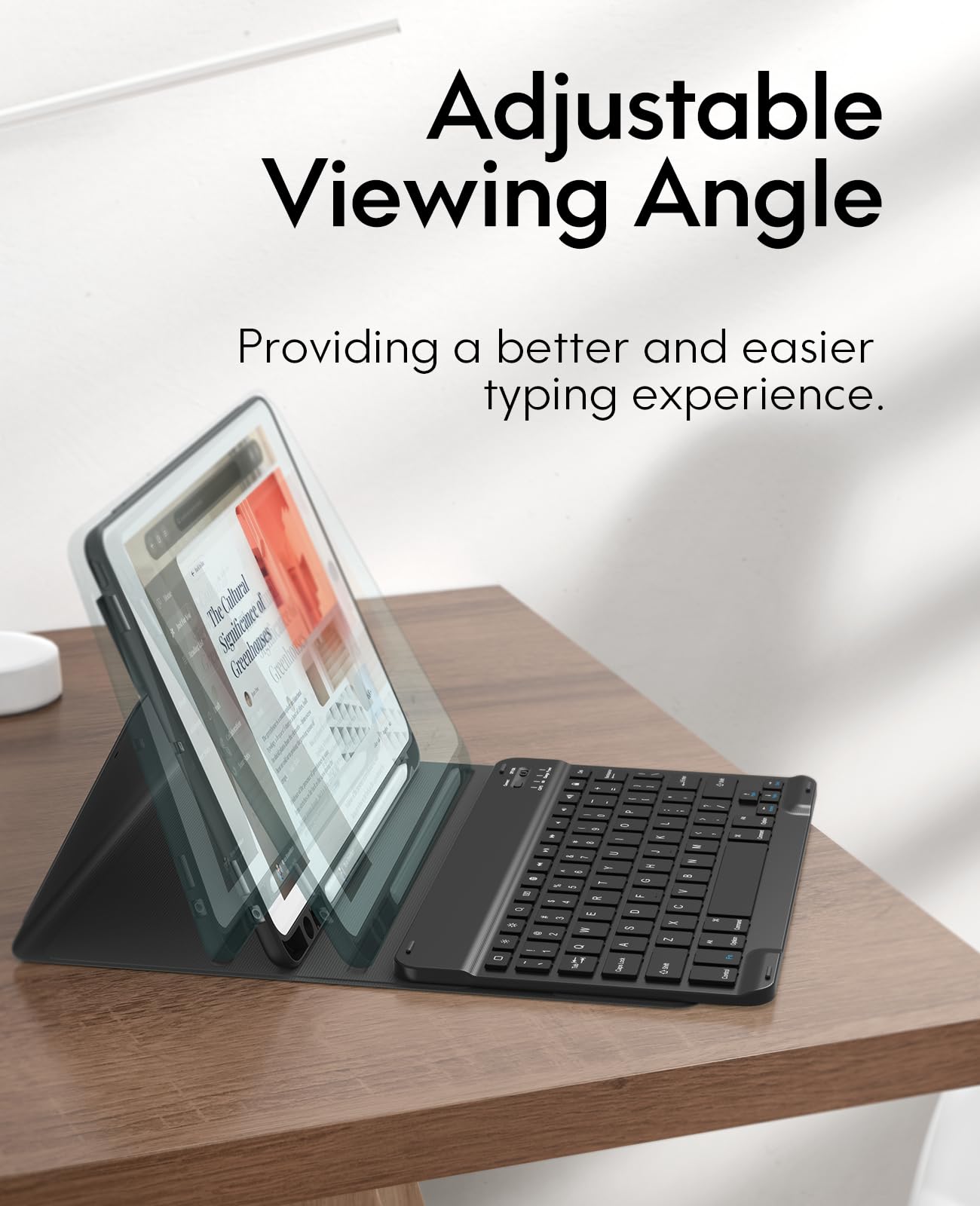 - Multiple Angles & 360° Drop Protection: 3 anti-slip stand angle easily adjusts to whatever comfortable position and media viewing suits you best - giving you amazing versatility for iPad 9th generation case with keyboard. Premium leather cover and soft microfiber-lined interior provide full protection. Solid construction, no bulky.