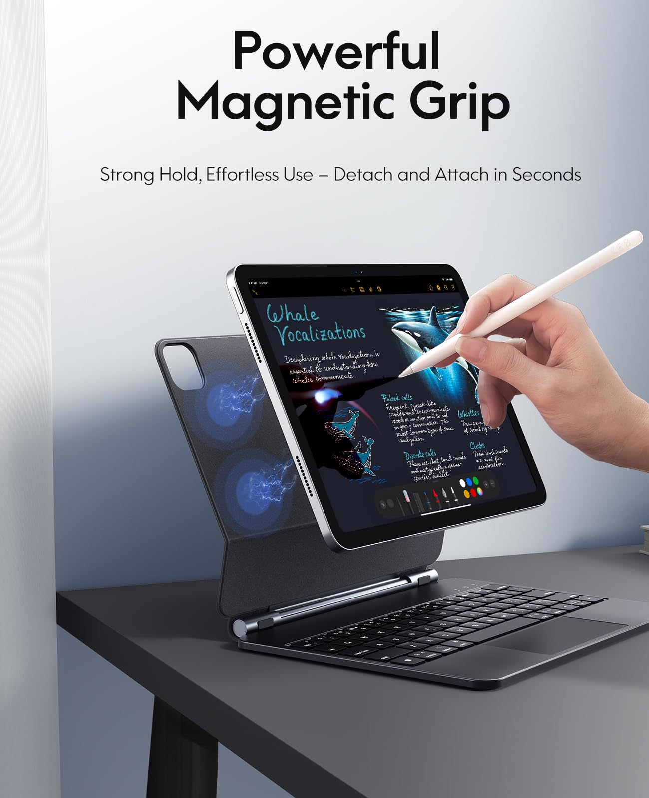 - Powerful Magnetic Adsorption: Equipped with built-in strong magnets for instant attachment and secure tablet fixation, preventing accidental drops. The floating cantilever stand design enables smooth installation/removal and offers multiple viewing angles for tablet just by opening the case, perfect for vacations, study, and business use.
