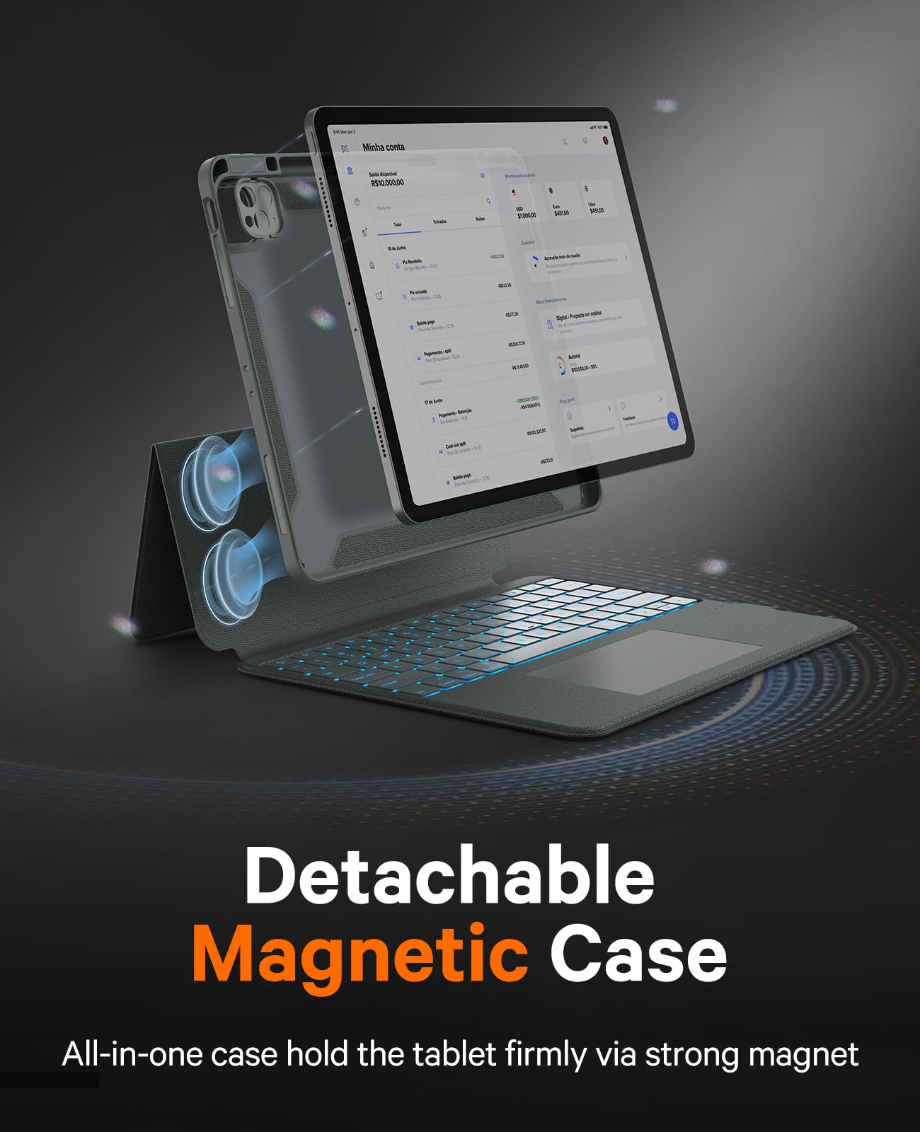 - Magnetic Detachable Keyboard: The intelligent keyboard case for iPad Air 13 lets you switch between a lightweight laptop and your tablet. Ultra-strong magnets seamlessly integrate the case with your tablet, allowing you to remove it and change orientation if not needed. Precise cutouts allow easy access to all ports, camera, speakers, headphone jack and volume control.