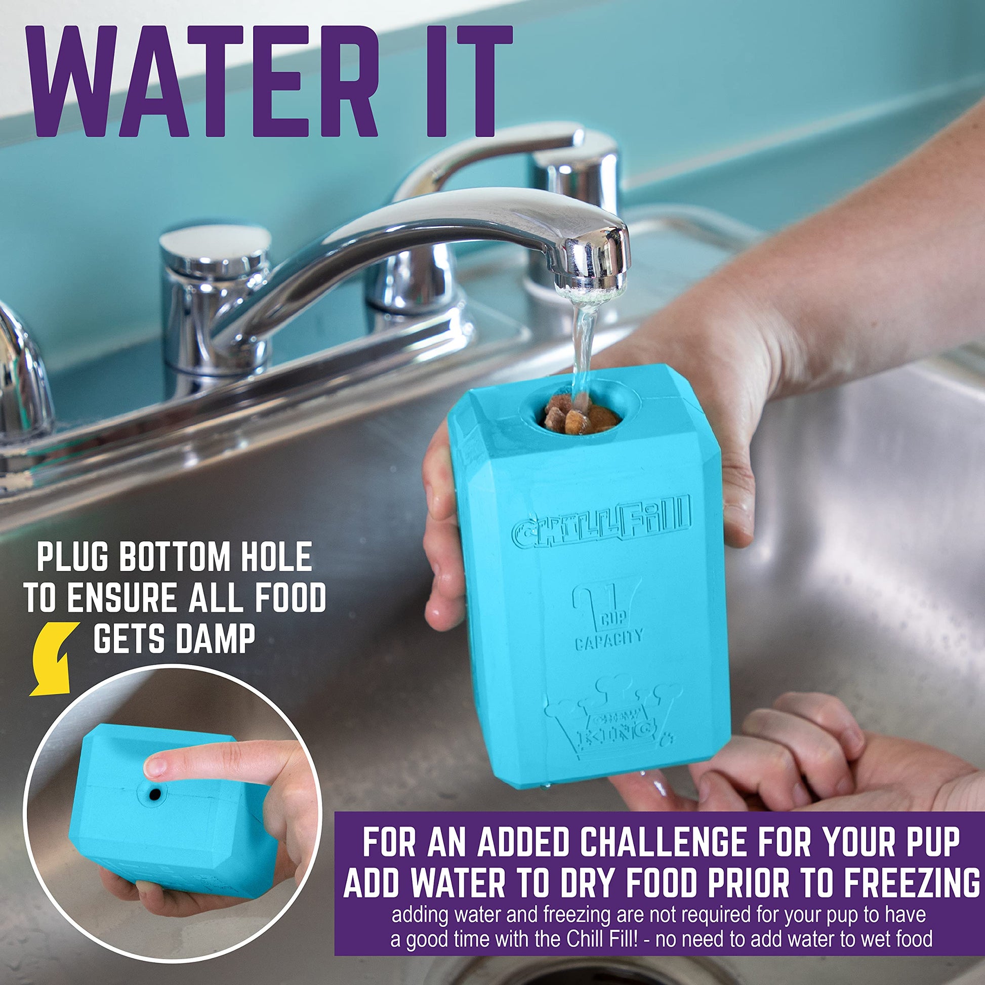 - dishwasher safe: whenever the chill fill gets a bit too grimy, cleanup couldn’t be easier. just toss it on the top rack of your dishwasher, hit go and, voila, it’s ready for treating again.